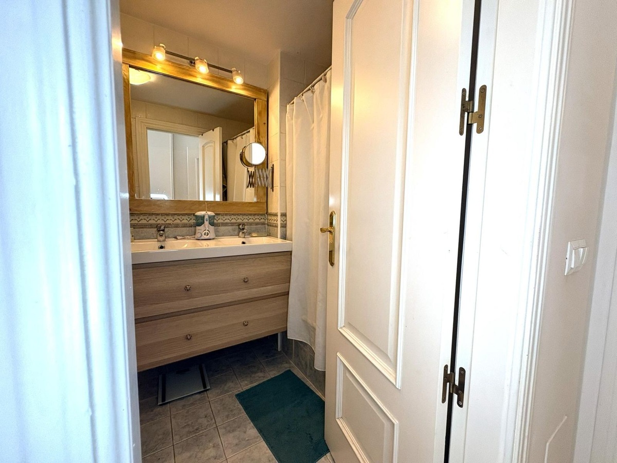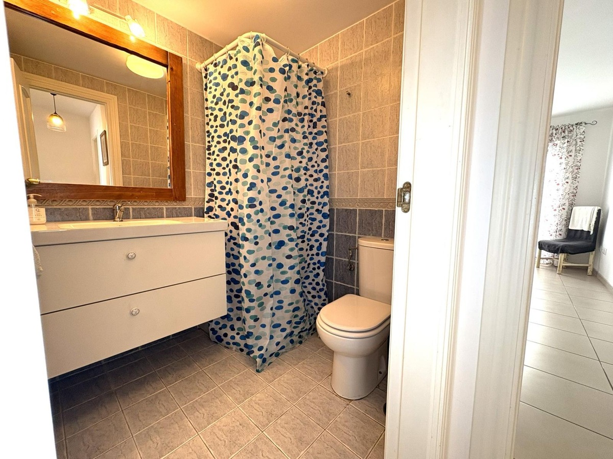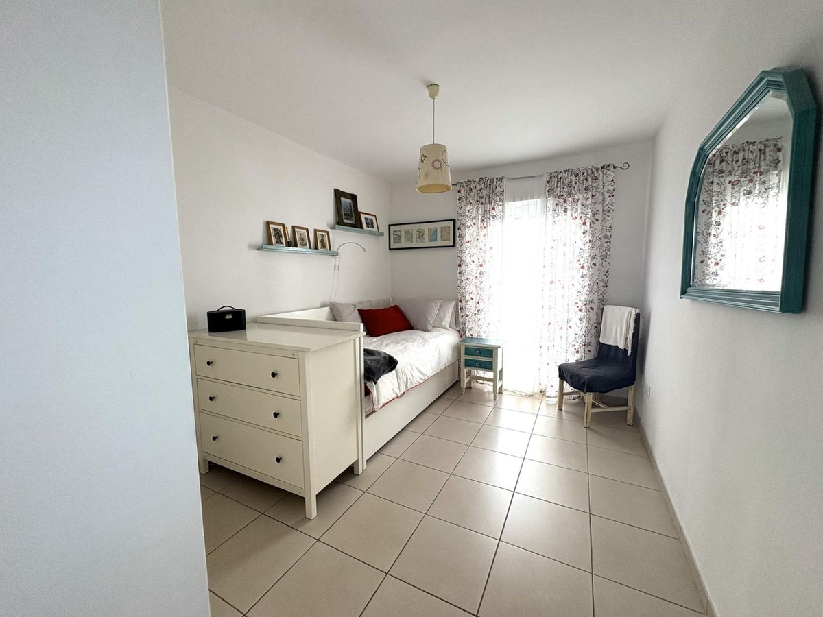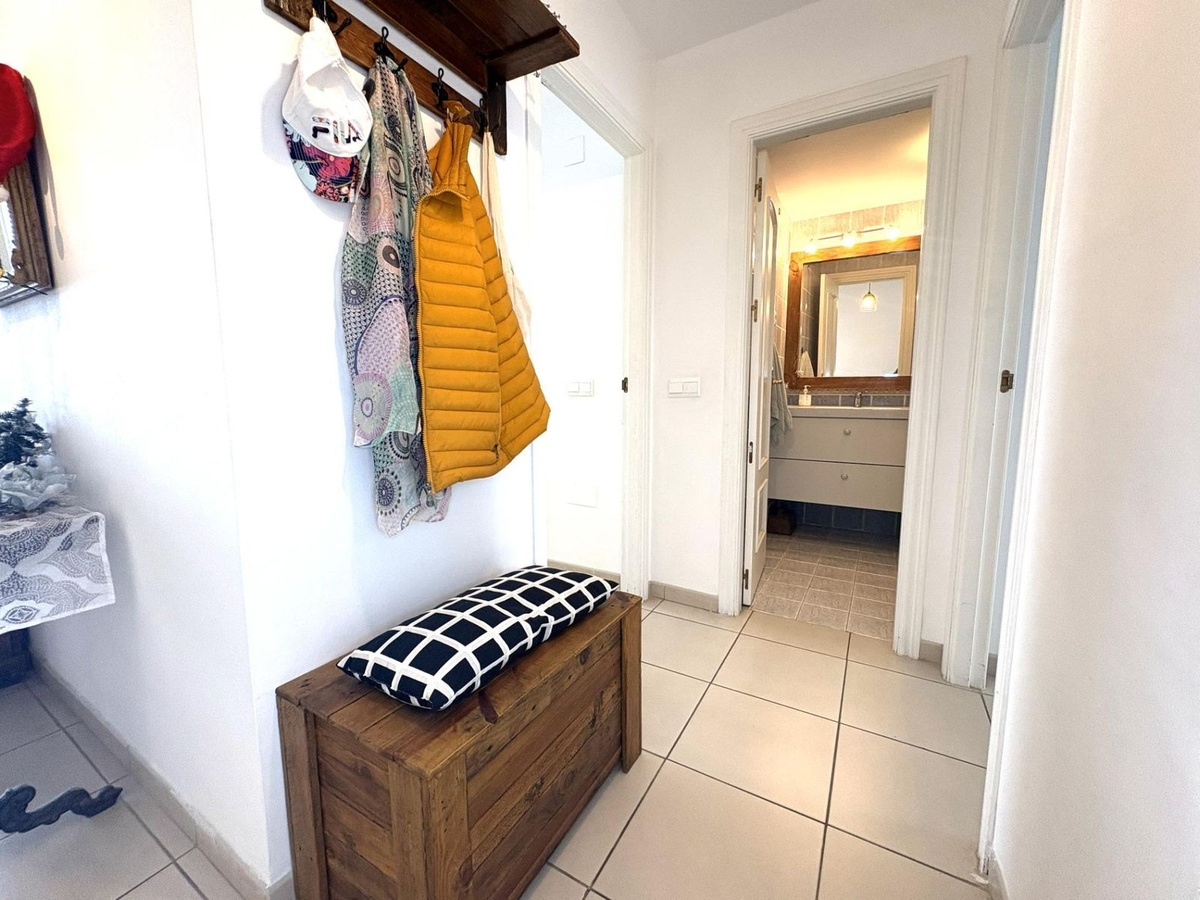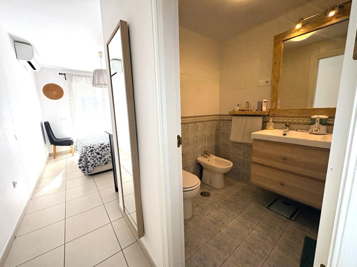 It offers a large, recently renovated kitchen, modern and fully functional, perfect for everyday use. The sleeping area comprises two bedrooms: a guest bedroom with a fitted wardrobe and a generous master bedroom with en-suite bathroom, also with a fitted wardrobe and direct access to the terrace, providing extra comfort and privacy.