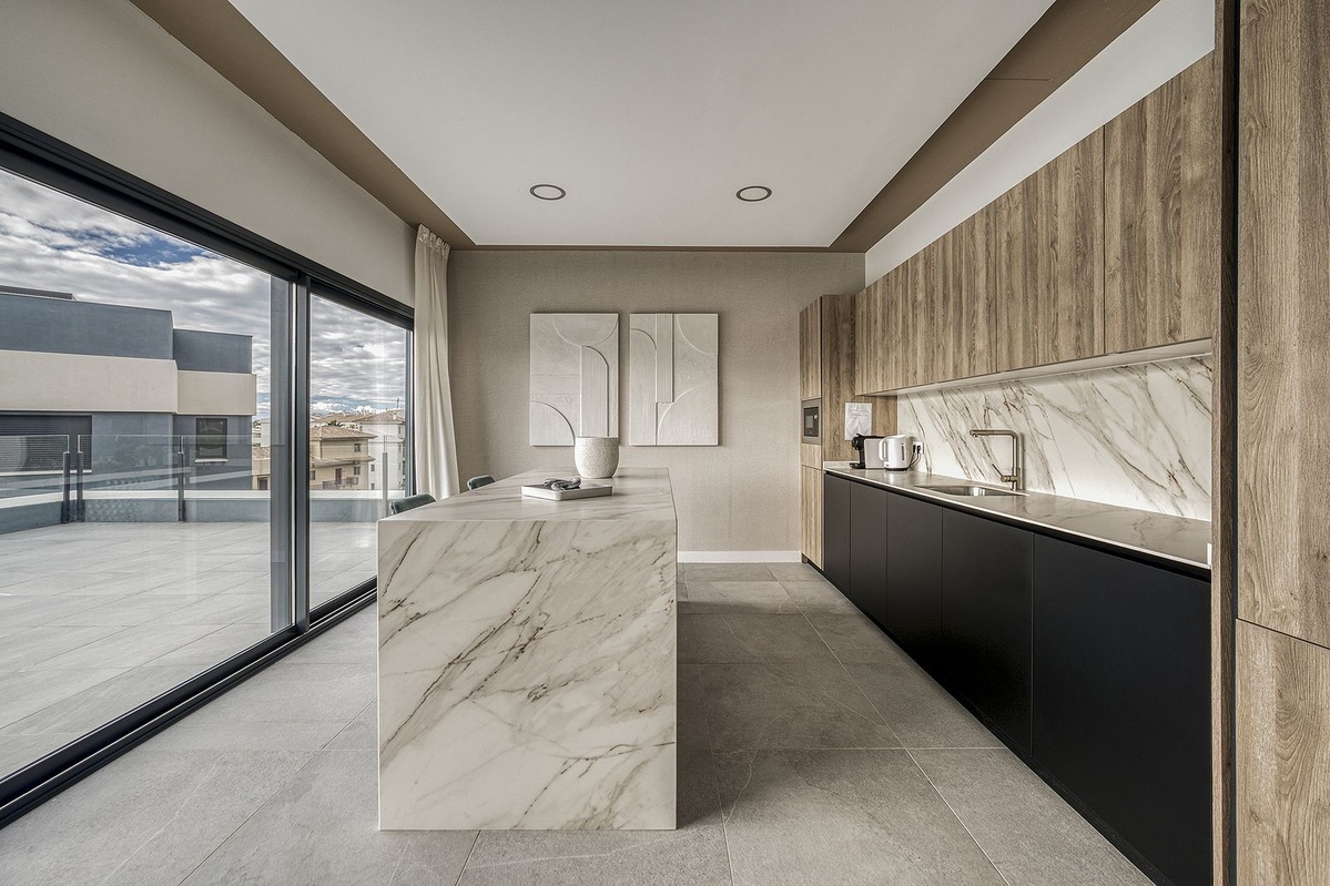 Designed with a contemporary concept, the apartment offers plenty of natural light, a well-balanced layout and high-quality finishes. The living area flows seamlessly onto the terrace, allowing indoor and outdoor living to blend perfectly — ideal for enjoying the Mediterranean climate all year round. The apartment enjoys a south-west orientation, ensuring abundant sunlight throughout the entire day. The property is sold with an underground parking space and storage room.