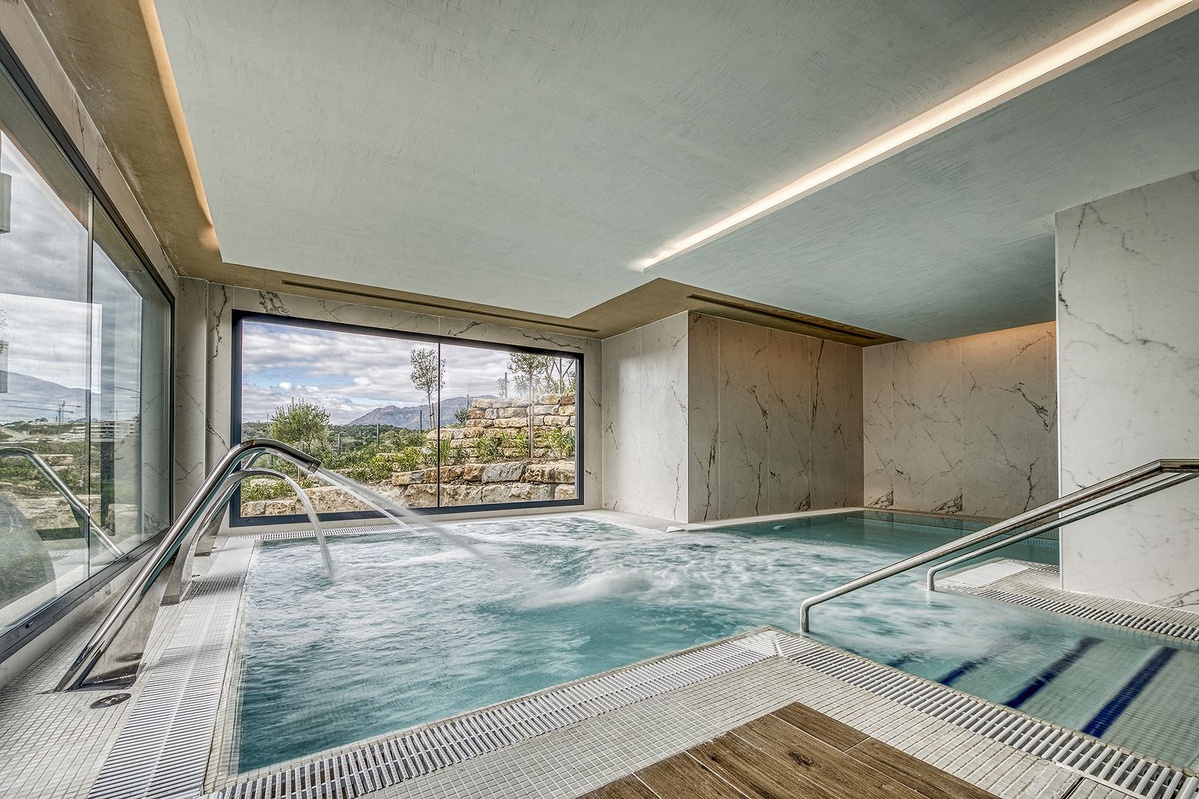 The complex offers outstanding communal facilities, including a beautiful spa with views over the surrounding nature, a heated indoor swimming pool, sauna, hammam and relaxation areas. In addition, residents can enjoy a large outdoor swimming pool and carefully landscaped gardens that enhance the exclusive and tranquil lifestyle.
