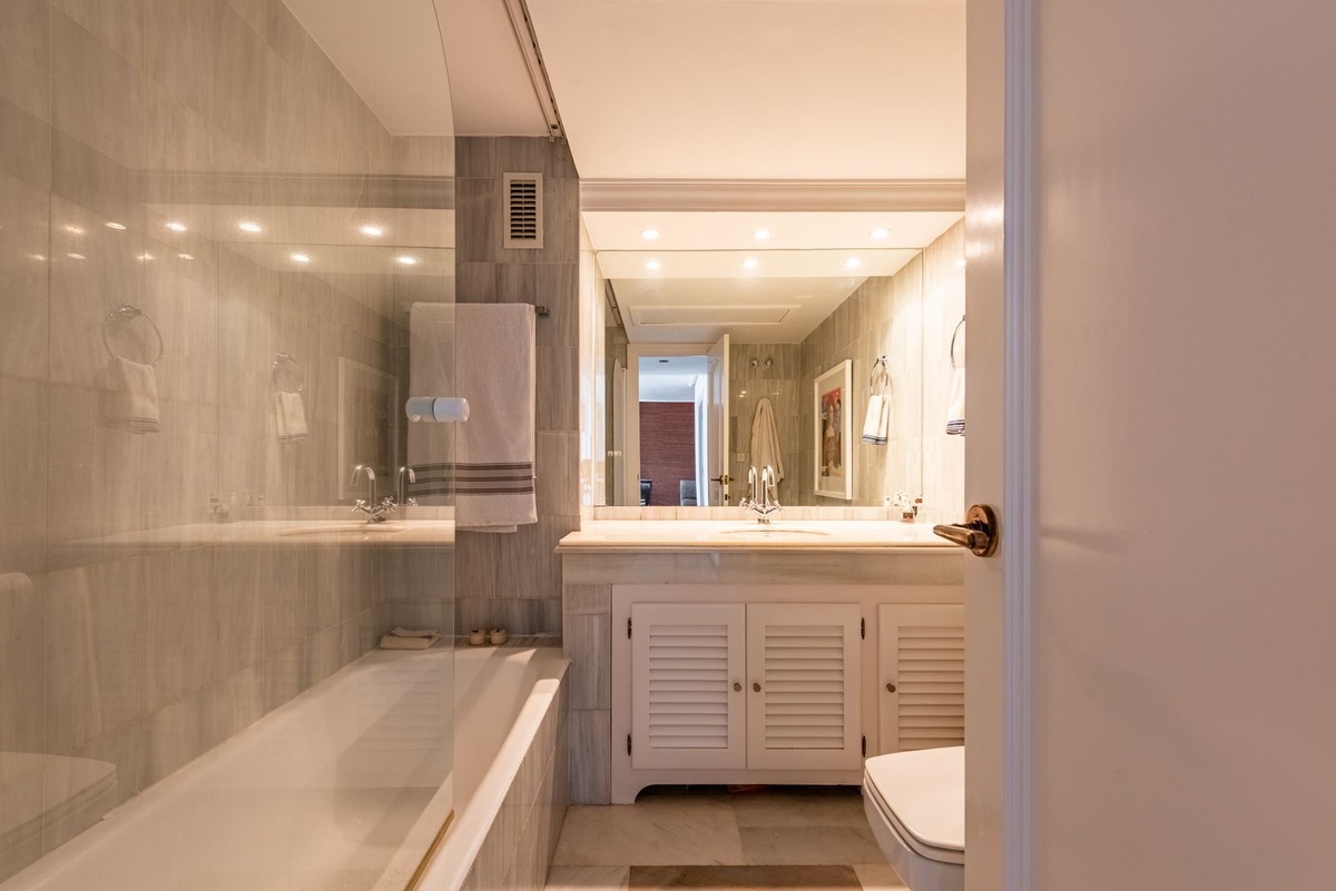 This very spacious and elegant apartment is located in the well-established community of Las Jacarandas in Bel Air, offering an ideal setting for comfortable permanent living on the Costa del Sol. South-facing and exceptionally private, the property enjoys open sea views and is not overlooked, creating a peaceful and exclusive atmosphere.
