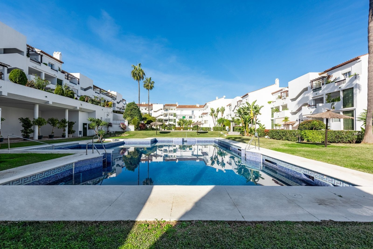 Las Jacarandas is known for its large communal gardens and swimming pool and enjoys a highly convenient location within walking distance to a wide range of amenities, including two supermarkets, banks, pharmacies, a tennis and padel club, and several restaurants.