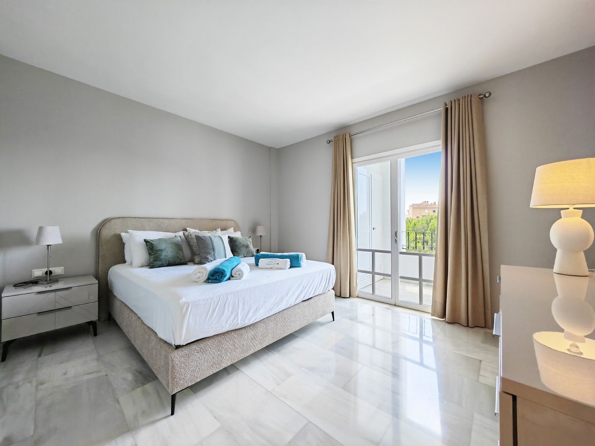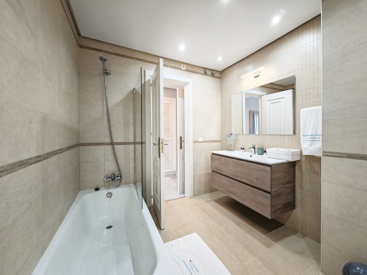 Apartment for sale in Puerto de Cabopino, Marbella with 2 bedrooms, 2 bathrooms, 1 toilet and with orientation south, with communal swimming pool, communal garage (1 parking spaces) and communal garden. Regarding property dimensions, it has 176.9 m² built, 135 m² interior and 25 m² terrace. Has the following facilities front line beach, amenities near, transport near, air conditioning, fully furnished, fully fitted kitchen, utility room, marble floors, guest toilet, private terrace, sea view, internet - wi-fi, covered terrace, fitted wardrobes, gated community, lift, garden view, pool view, panoramic view, beach side, close to children playground, close to sea / beach, close to golf, open plan kitchen, excellent condition, ceiling heating system, close to shops, close to town, close to port, close to schools, marina view, partial sea views and close to restaurants.