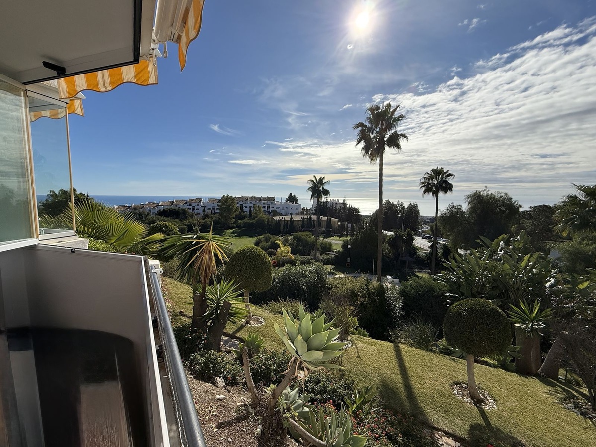 Stunning elevated ground floor apartment with panoramic sea views. Located in Calahonda, this recently refurbished apartment has been restyled and modernized to the highest of standards by El Cortes Ingles interior design. The property comprises of hallway, large lounge/dining room and a luxury kitchen with utility area. In addition there are 2 bedrooms with built in wardrobes and 2 bathrooms, the master bedroom having this facility en-suite and with patio door access to the large south facing terrace. The terrace is also accessed via patio doors from the lounge and has the fabulous benefit of glass curtains, allowing all weather use , from which panoramic sea and garden views can be enjoyed. The complex is immaculately maintained with fantastic sub tropical gardens and 2 swimming pools and ample open but secure parking areas. And located within easy walking distance of local bars, restaurants and a supermarket, with public transport nearby also. Luxury furnishings are available as an optional extra purchase.