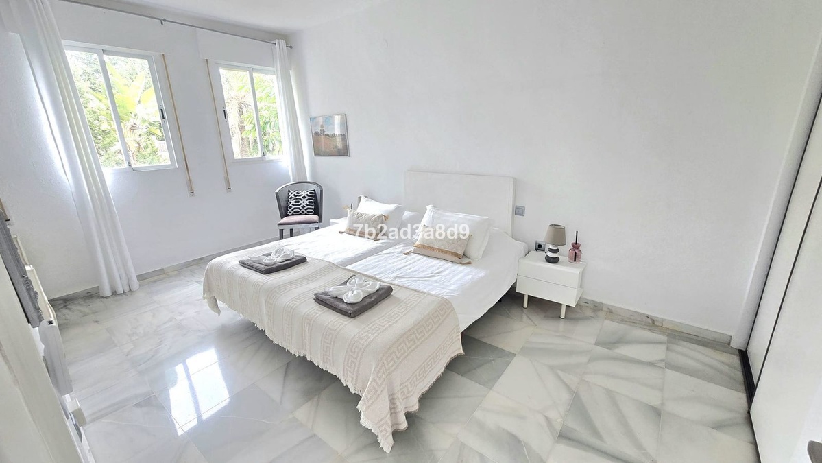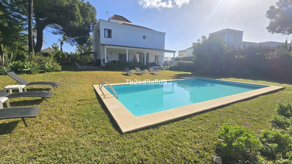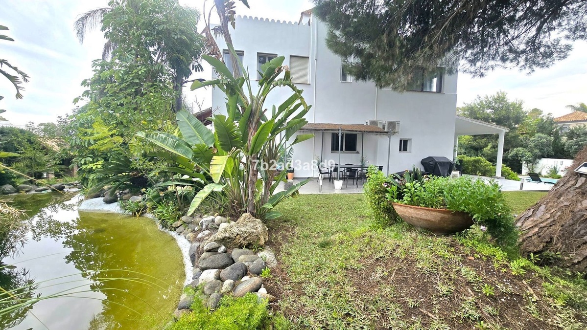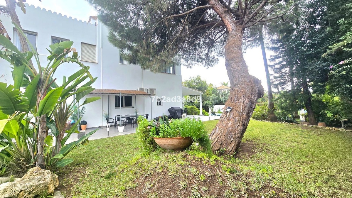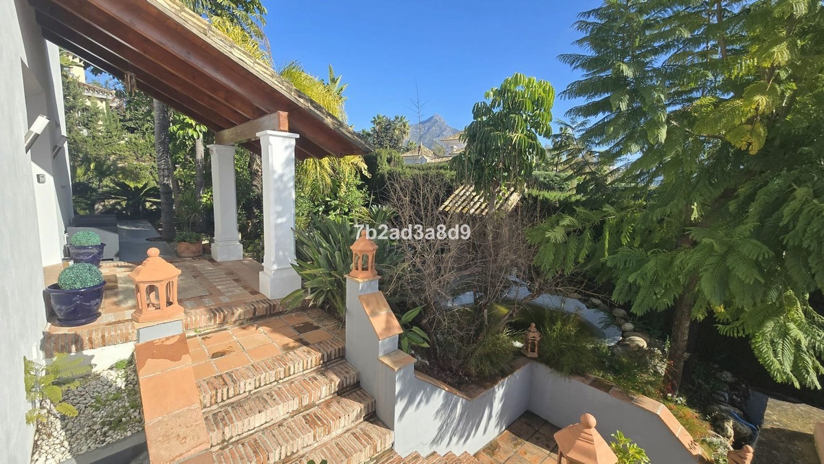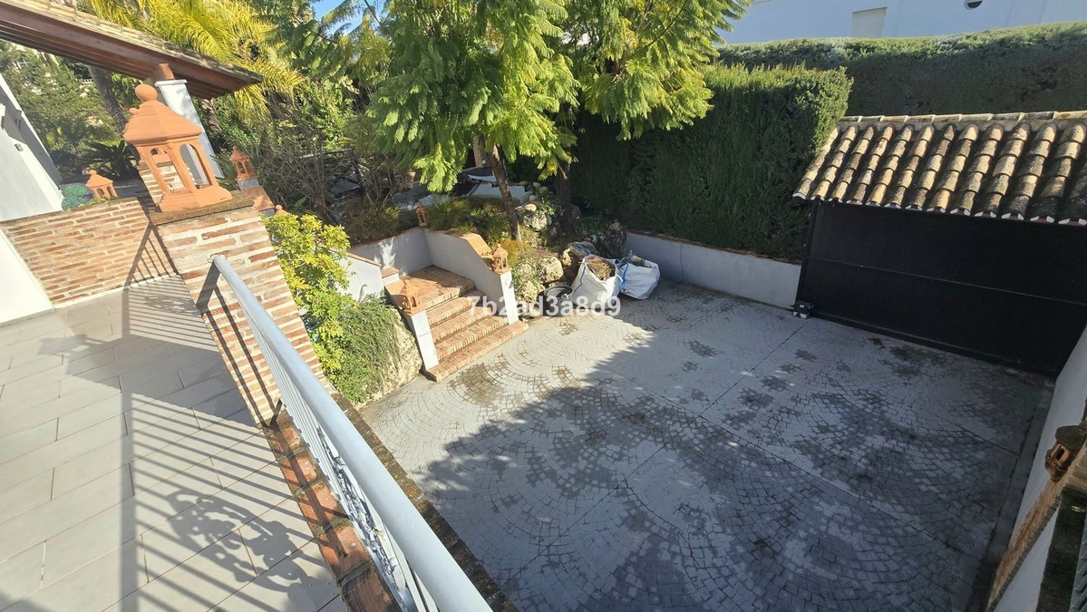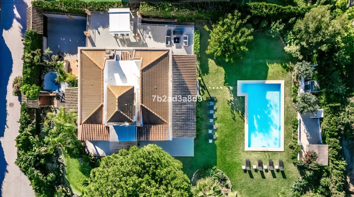 Situated in the exclusive residential enclave of Las Brisas, Nueva Andalucía, Marbella, this elegant villa enjoys a privileged position at the end of a quiet cul-de-sac, ensuring exceptional privacy and tranquility. The property occupies a generous 1,279 m² square plot, surrounded by mature landscaping and distinctive architectural details.