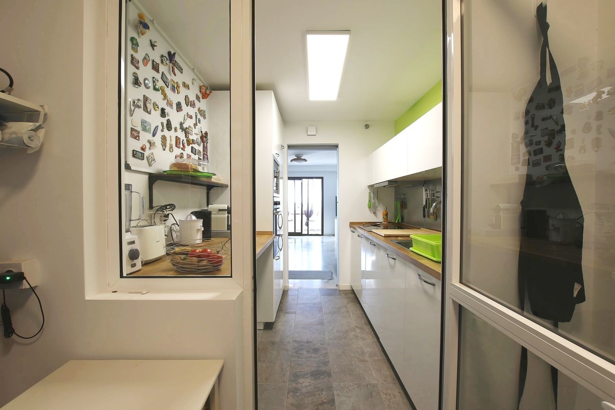 The apartment is modern and airy. The living room features a large dining table, an L-shaped sofa, a smart TV, and direct access to the terrace with sea views. The separate kitchen is fully equipped with all appliances, including a coffee maker, toaster, etc. A washing machine and a drying machine for clothes are located in the utility room.