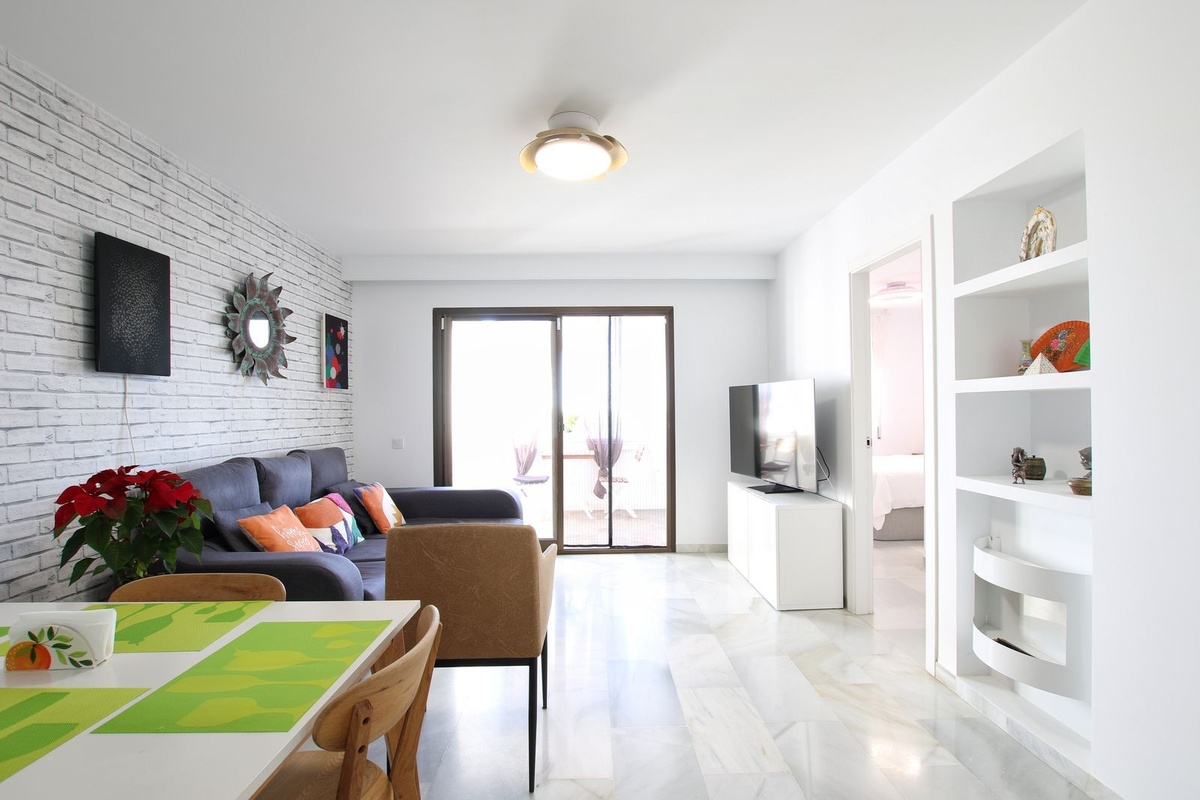 The apartment is situated in a gated community on a quiet cul-de-sac, close to all amenities. A supermarket and several restaurants and bars are within walking distance, and Riviera del Sol beach is a 10-15 minute walk or a 2-minute drive. There is a communal swimming pool in the complex, and parking is communal (if there is space inside the complex, you can park there; otherwise, you will have to park on the street).