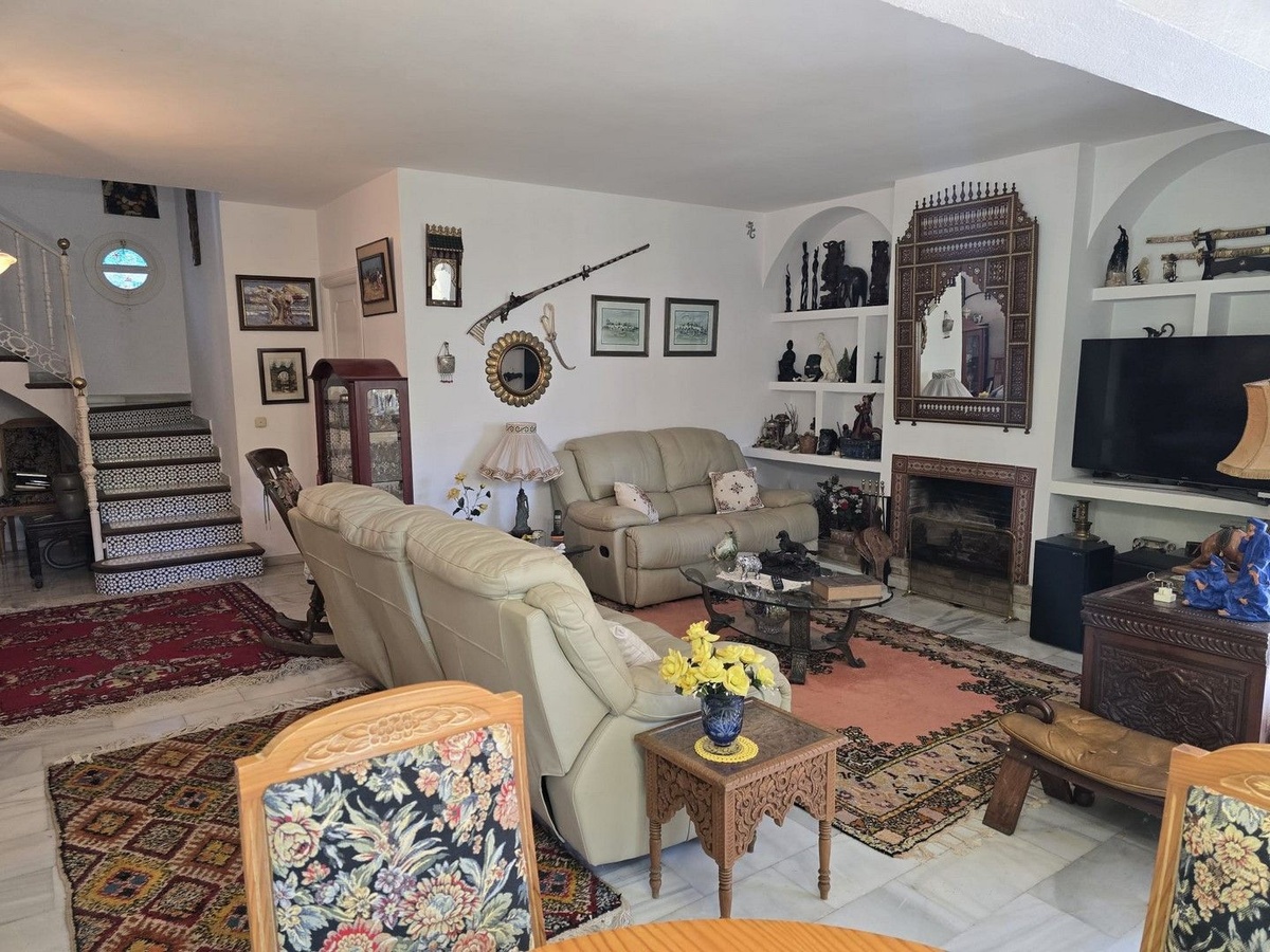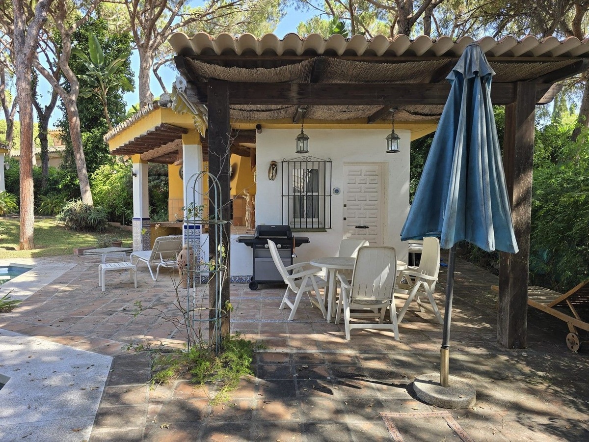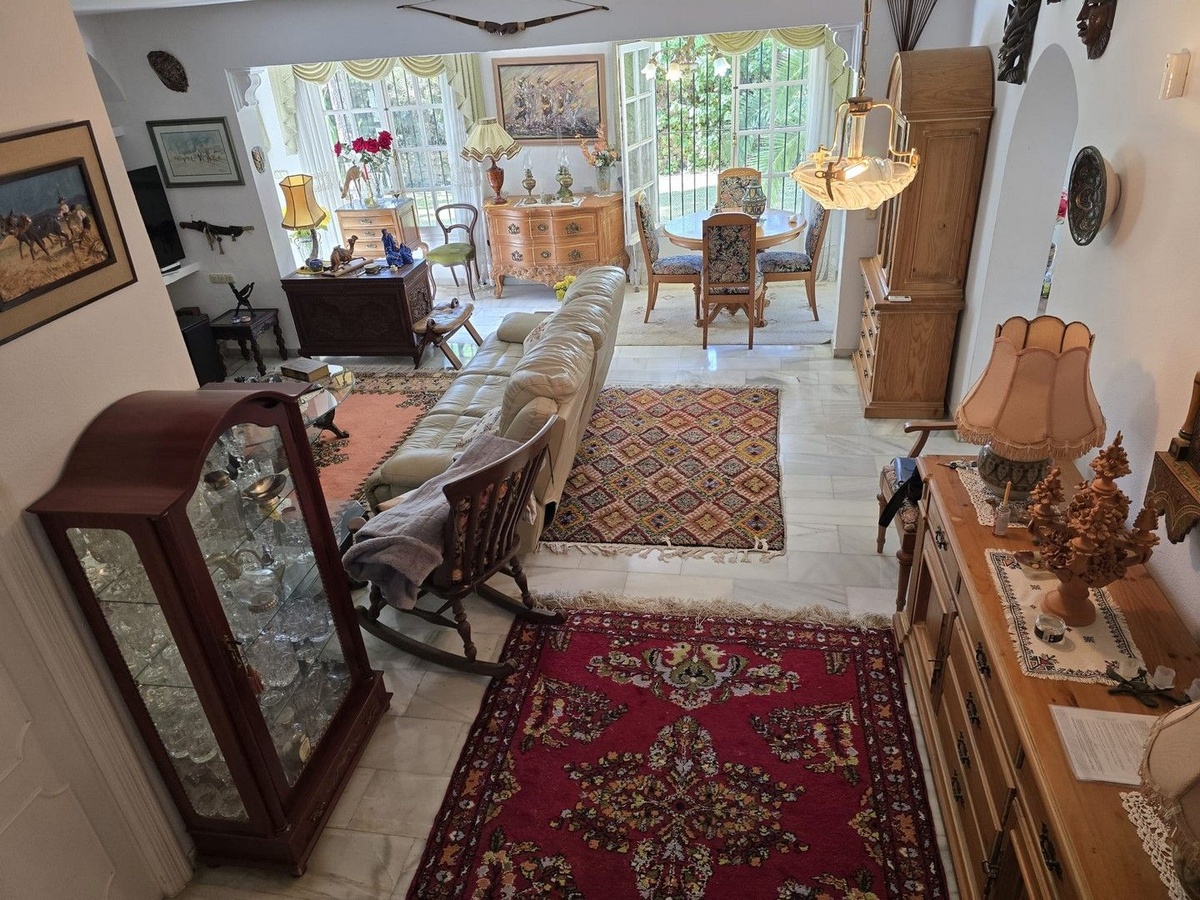 It includes numerous extras such as a laundry room, storage room, water tank, solar panels for hot water, an automatic irrigation system, private access, and spacious parking for several cars. With both well and municipal water, an efficient and economical supply is guaranteed. The villa is in good condition and offers potential for expansion or updating, making it an excellent investment. Located close to schools, leisure areas, golf courses, tennis courts, shops, a pharmacy, buses, restaurants and cafes, etc., with excellent road access. This property represents a unique opportunity for those seeking a comfortable, well-located home with great potential in one of the most sought-after areas of the Costa del Sol. The main house consists of 3 bedrooms and 2 bathrooms, and in the pool area there is a studio with a bathroom.