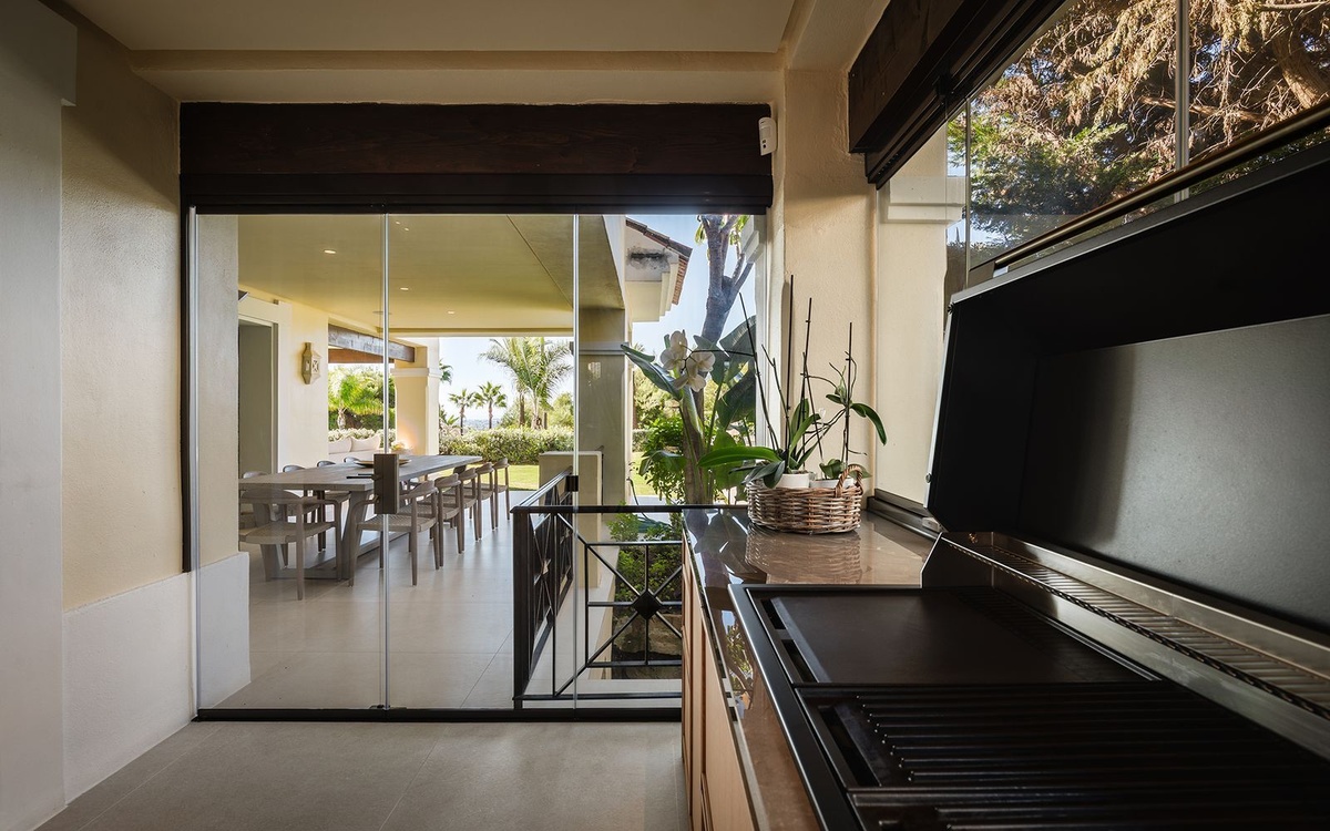 Step into refined sophistication with this rare ground-floor apartment featuring a private garden and pool. Perfectly situated in the prestigious Aloha Golf area—one of Marbella’s most sought-after enclaves within the Golf Valley of Nueva Andalucía—this residence embodies the essence of luxury living.