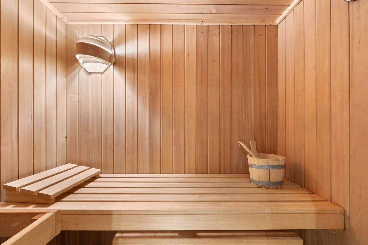 The villa features 4 bedrooms and 5 bathrooms, with all bedrooms enjoying en-suite bathrooms, plus a guest toilet. Fitted wardrobes and ample storage enhance everyday comfort. Designed with wellness in mind, the property also includes a private sauna.