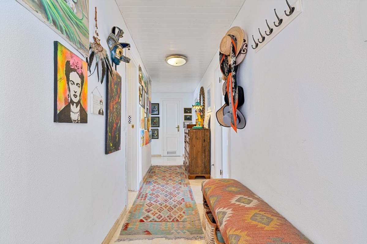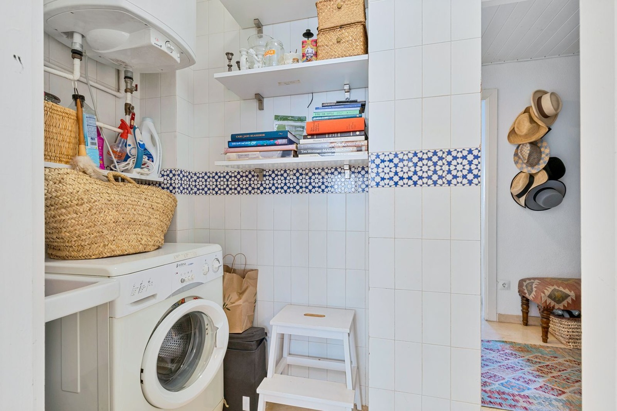 The bright and generous L-shaped living room offers ample space for both a comfortable seating area and a dining area, conveniently located next to the fully equipped kitchen. From the living room, you access a cozy south-facing terrace overlooking the pleasant communal garden – a perfect spot to enjoy the sun and relax. Residents of Tres Coronas benefit from excellent communal facilities, including a rooftop swimming pool and sauna, providing a true Mediterranean lifestyle. The location is unbeatable for convenient living. Train and bus stations are just 100 metres from the property, and the beach is approximately 400 metres away. A wide selection of restaurants, cafés, shops and services can be found within walking distance.