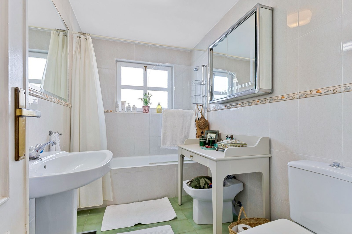 Properties in the highly desirable and well-established residential complex Tres Coronas rarely come onto the market. We are now pleased to offer this well-planned apartment with two bedrooms and two bathrooms, with a total built area of 90 m², located in the heart of Fuengirola. The apartment features spacious bedrooms with excellent wardrobe space. The master bedroom has an en-suite bathroom, while the guest bedroom has access to a separate shower room – ideal for family and visiting guests.