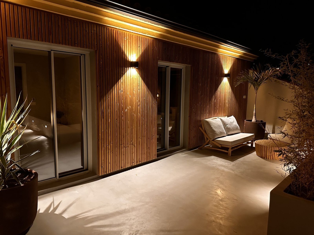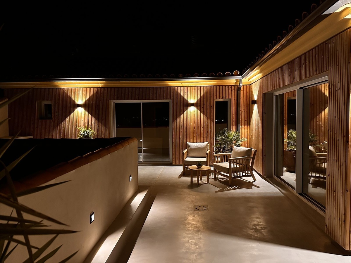 Every bedroom opens directly onto the terrace, enhancing the sense of openness and connection to the surrounding landscape.