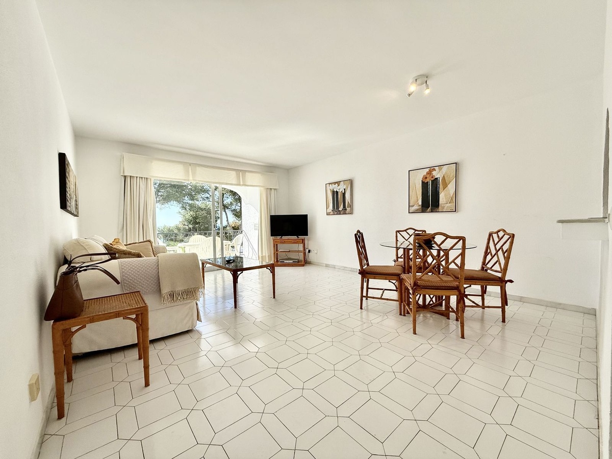 Upon entering the property we find a fully equipped kitchen that gives access to a spacious living-dining room. From the living-dining room there is the terrace that offers stunning views of the sea and the gardens of the complex. On the left wing are the two double bedrooms that share a bathroom.