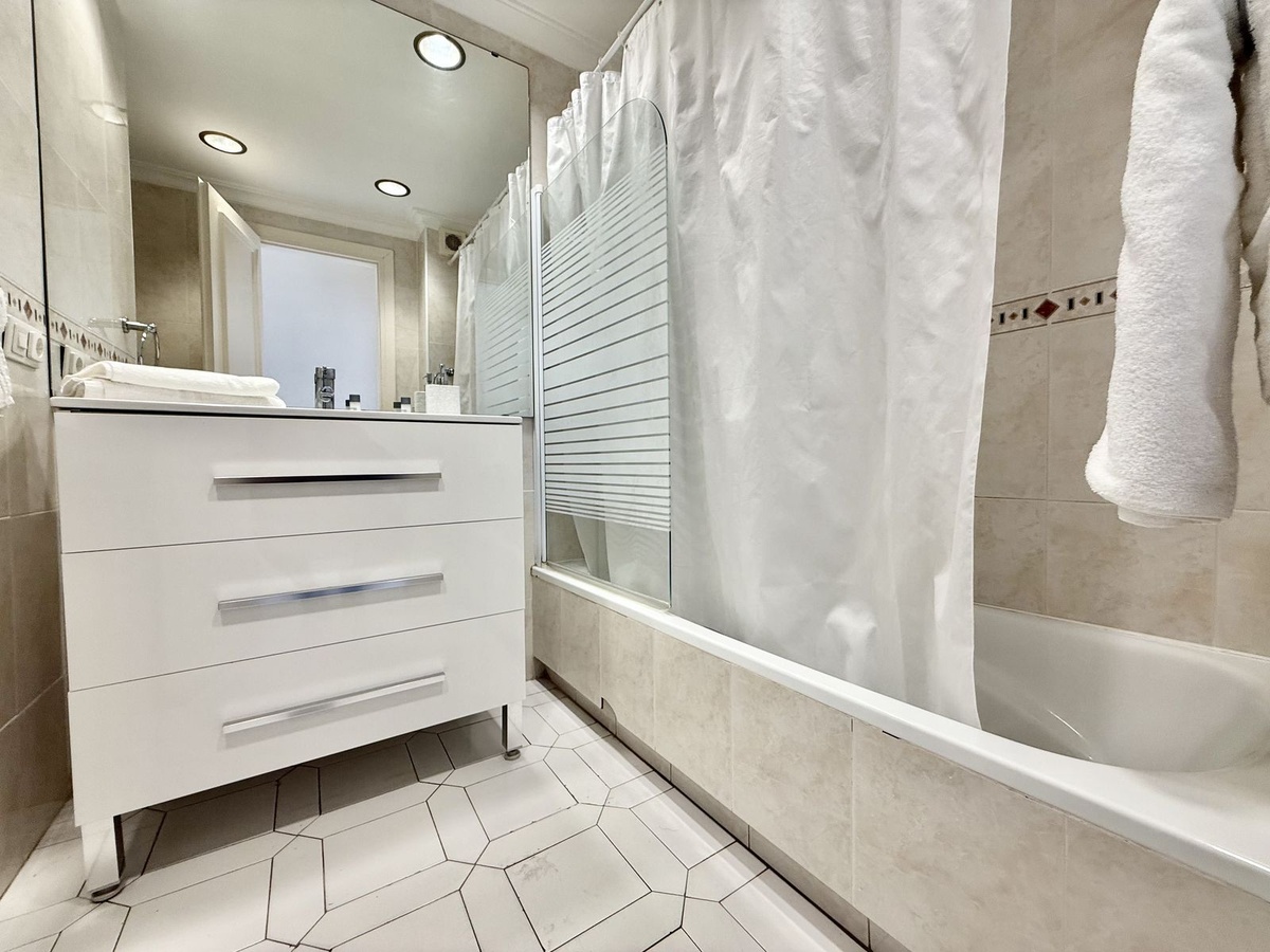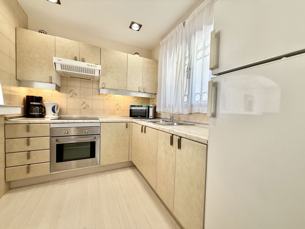 Located in an exclusive development, this 2 bedroom, 1 bathroom apartment in Miraflores offers a peaceful setting surrounded by lush botanical gardens, waterfalls, tennis and paddle courts, as well as several swimming pools. Just a 10-minute walk from the beach and the vibrant promenade, which extends to La Cala de Mijas in a pleasant 25-minute walk.