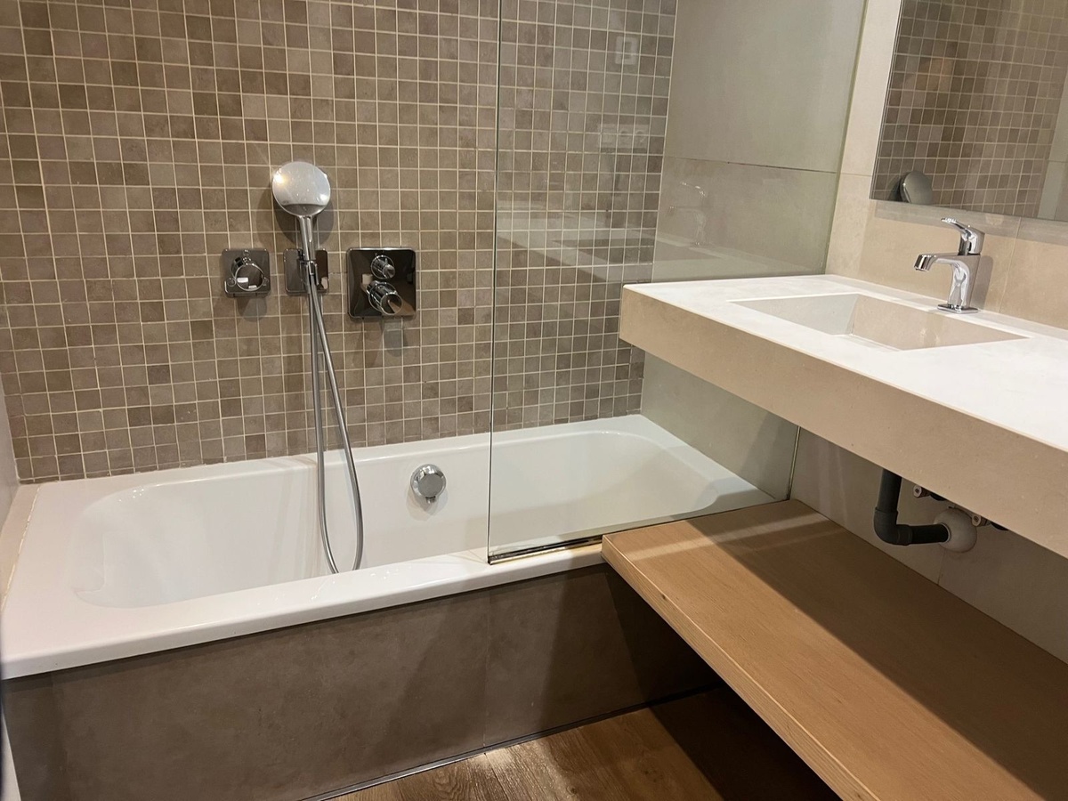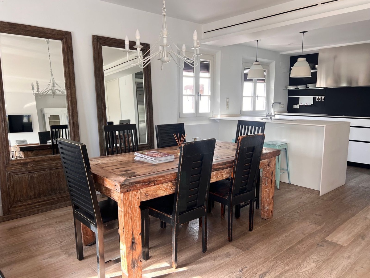 Spanning 155m² of beautifully presented living space, the penthouse comprises 3 spacious bedrooms and 3 modern bathrooms, all finished to a high standard. The property has undergone a high-end refurbishment, featuring antique wooden flooring throughout, lending a sense of timeless elegance. The living areas are bright and airy, with fireplace in the living room, spacious dining area enhanced by double windows opening directly onto the terrace, ideal for alfresco dining and entertaining. The open-plan Valcucina kitchen is equipped with NEFF appliances and a Sub-Zero refrigerator, catering to the most discerning culinary needs.