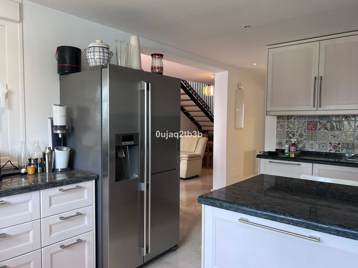 Sought after apartment in a closed gated complex with high security standards. This gated complex offers large open areas, matured gardens, large communal pool for adults and for children and tennis court. Walking distance to Centro Plaza and Puerto Banus. This apartment is a rare occasion to purchase a 4-bedroom duplex in this complex. Fully refurbished ready-to-move-in. Good specifications, ample and full of natural light. Offers pool and garden views and some distance sea views. Includes hot cold A/C, underfloor heating and electric shutters. Perfectly distributed having the en-suite master bedroom in the ground floor, kitchen, office space and guest toilet plus the living-dining with chimney. The top floor includes three bedrooms and two baths two terraces, one private with very nice views and ample distribution area.