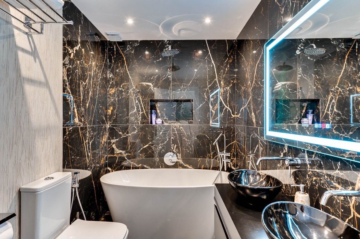 A standout feature is the top terrace, transformed into a sophisticated bar and chill-out space for entertaining. Residents can enjoy access to two outdoor pools, an indoor pool, and the added security of a gated community. The property also includes underground parking for extra convenience.