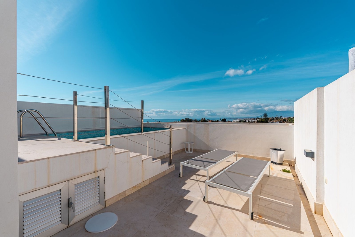 The property is fully furnished and equipped with a fully fitted kitchen, air conditioning, underfloor heating in the bathrooms and high-quality finishes throughout. Outdoor spaces are a true highlight, offering a private swimming pool, multiple terraces and a roof terrace ideal for relaxing, entertaining or enjoying the Marbella climate all year round.
