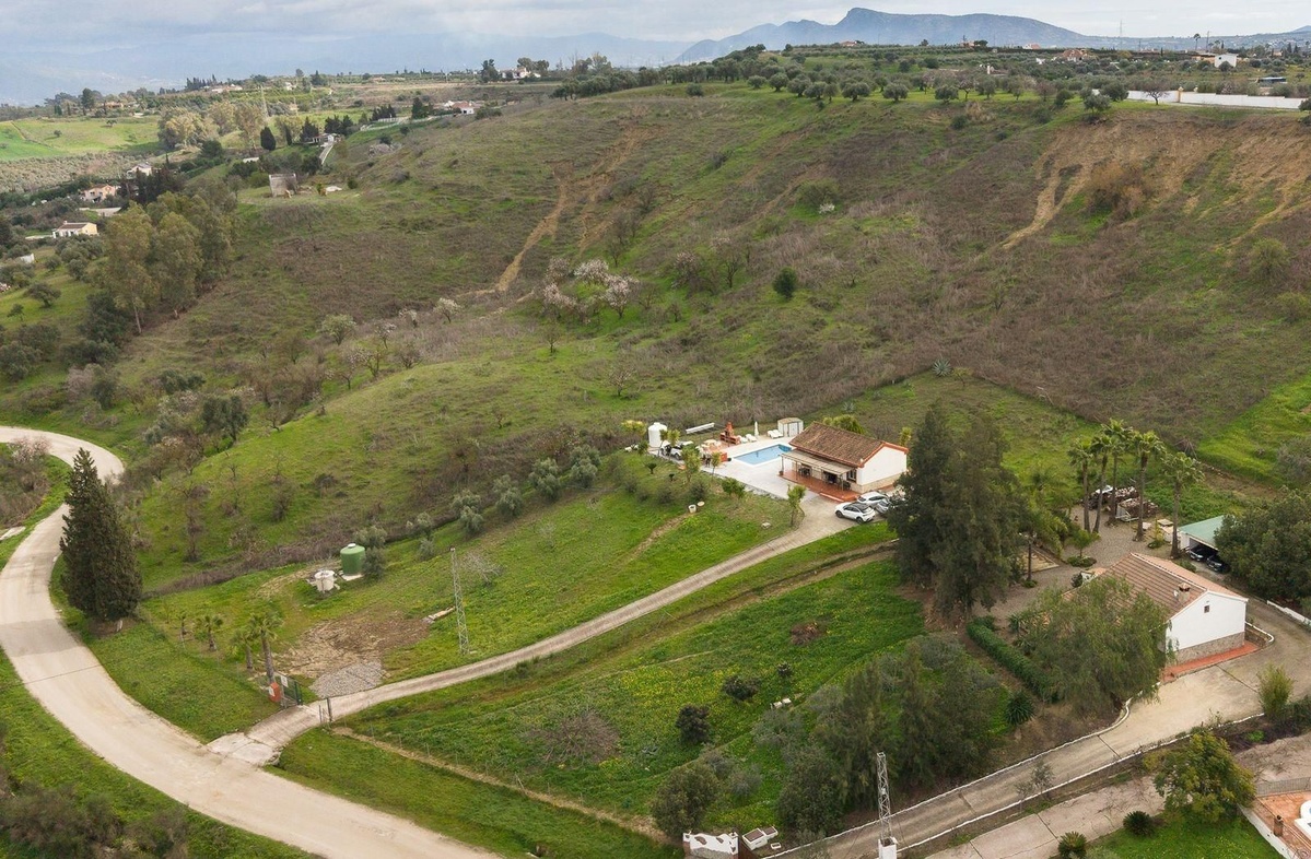 Charming country cottage in excellent condition, currently licensed for holiday rentals and ideal as a second home or investment. The single story house features two double bedrooms, a full bathroom, a fully equipped open-plan kitchen and a living room with direct access to the entrance porch. The over 6,000m² plot is partially fenced, with a fully paved access ramp leading to the parking area. There is a barbecue and a private 8x4m swimming pool surrounded by a terrace offering spectacular views of the valley. Two water tanks (one 20,000L and another with 8,000L) are also included. The property is located 10 minutes from the town of Coín and 30 minutes from the coast and Málaga city.