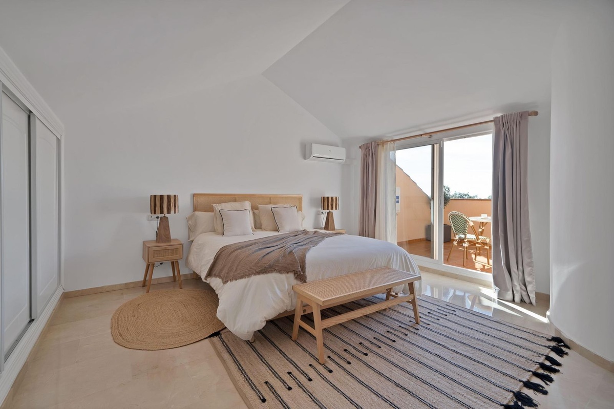 Experience refined coastal living in this exclusive newly renovated duplex penthouse for rent in Elviria, Marbella East, ideally located in the prestigious gated community of Los Jardines de Santa María Golf. Perfectly positioned next to Elviria’s vibrant commercial plaza, the property is within easy walking distance of restaurants, cafés, supermarkets and year-round amenities, as well as some of Marbella’s finest sandy beaches and renowned beach clubs.