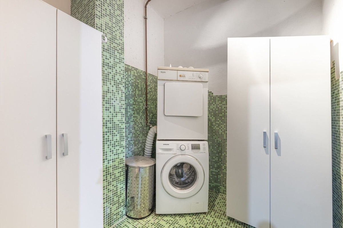 On the lower floor there are three bedrooms and two bathrooms, one of them en-suite. All bedrooms have direct access to the private garden, creating a pleasant outdoor space. The garden also offers the possibility to build a private swimming pool, if desired.