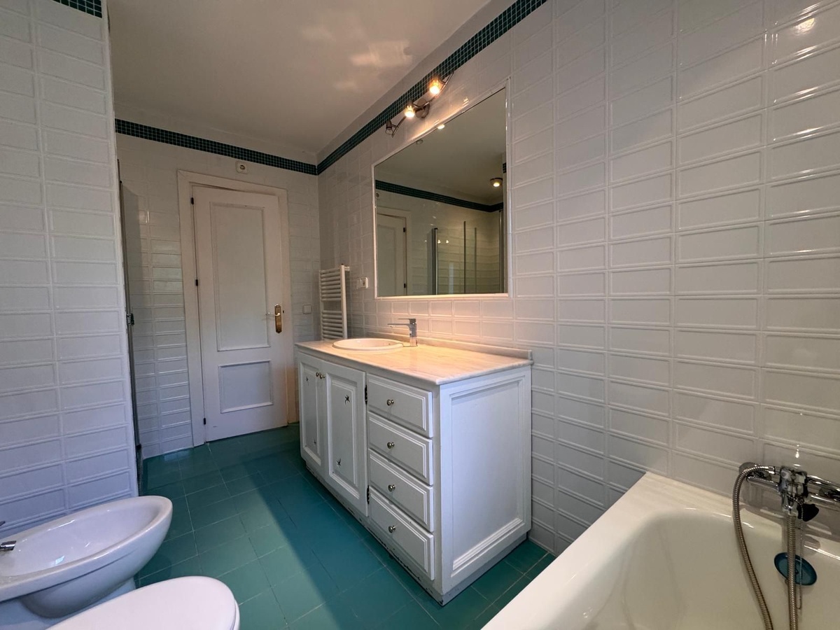 The house features a spacious living-dining room with a fireplace and access to a covered terrace with marble floors. This sunny terrace leads to a 90 m² garden with direct access to the communal pool. The kitchen is fully independent, furnished, and partially equipped, with a small dining area. There is also the possibility of opening it up to the living room to create a utility room. The property needs a bit of love, it has great potential. The bedrooms are quite spacious with large built-in wardrobes, and there are two full bathrooms and a guest toilet.