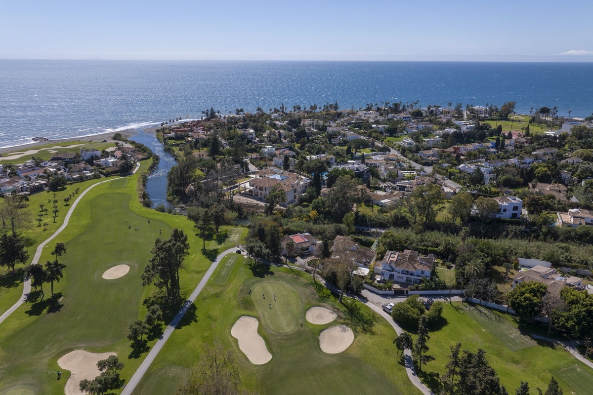 This charming single-storey villa presents a rare opportunity to create a truly special home in one of the most prestigious areas of Guadalmina Baja. Set on a generous 813m² plot, the property enjoys a unique and tranquil position as one of just four houses, bordered by the river Guadalmansa and the southern golf course of Real Club de Golf Guadalmina.