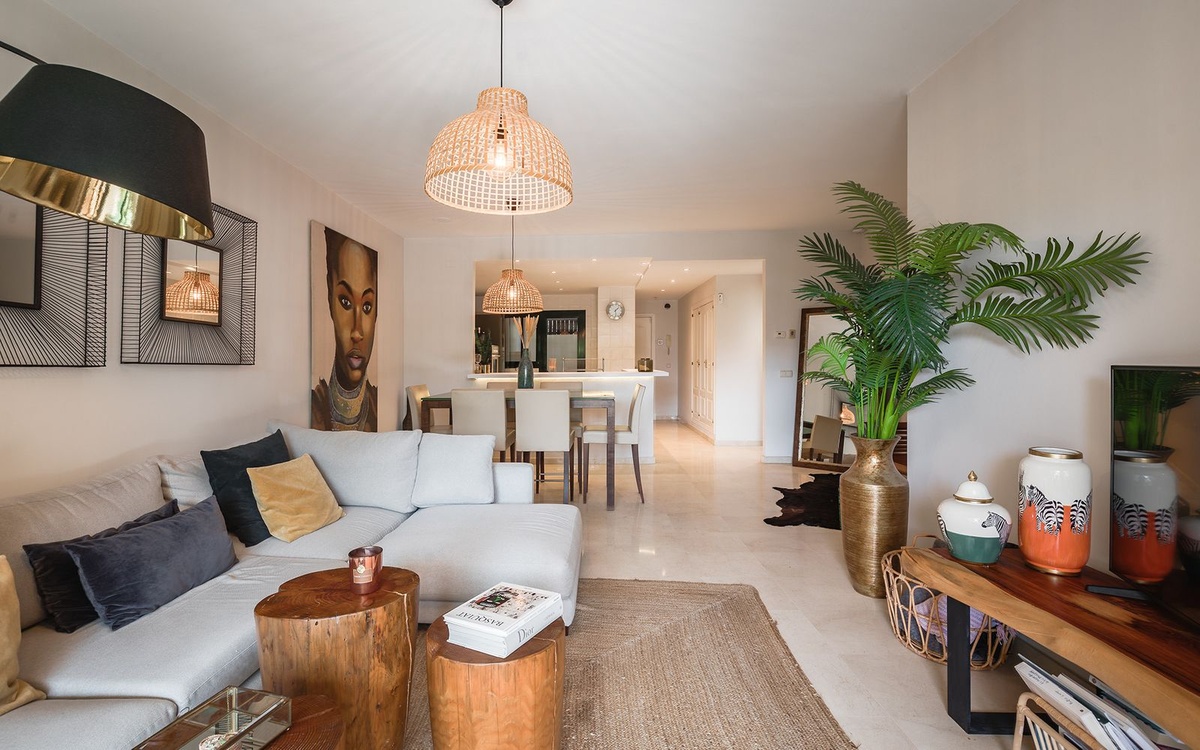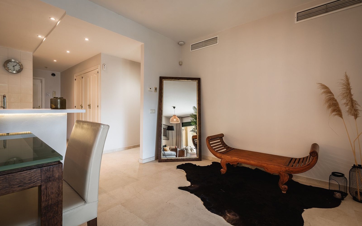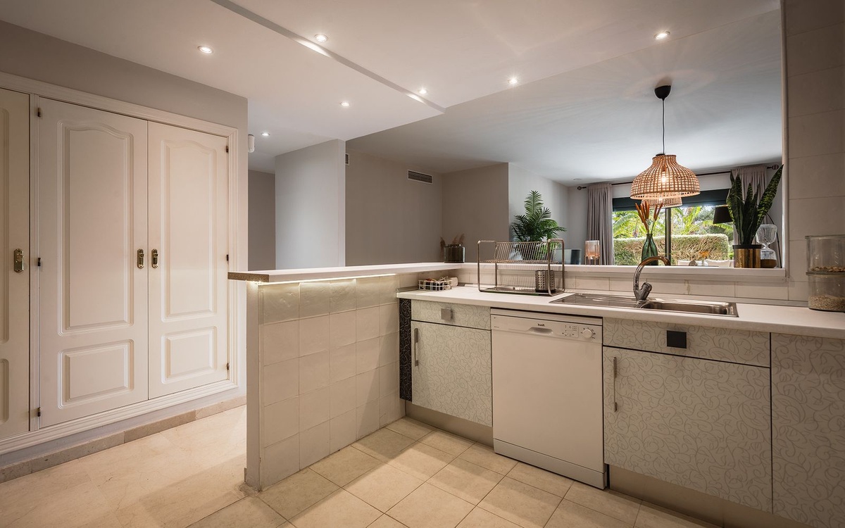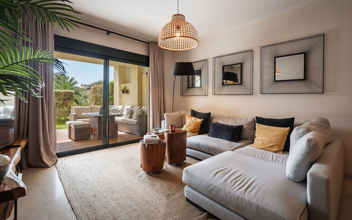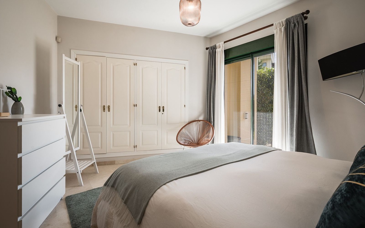 Located in a prestigious frontline golf gated community in Guadalmina Alta, this beautifully renovated ground-floor apartment offers a perfect combination of modern comfort, privacy and a prime golf-side setting. The community features 24-hour security, landscaped gardens with generous open green areas, a communal swimming pool and a gym, creating a peaceful and secure residential environment.