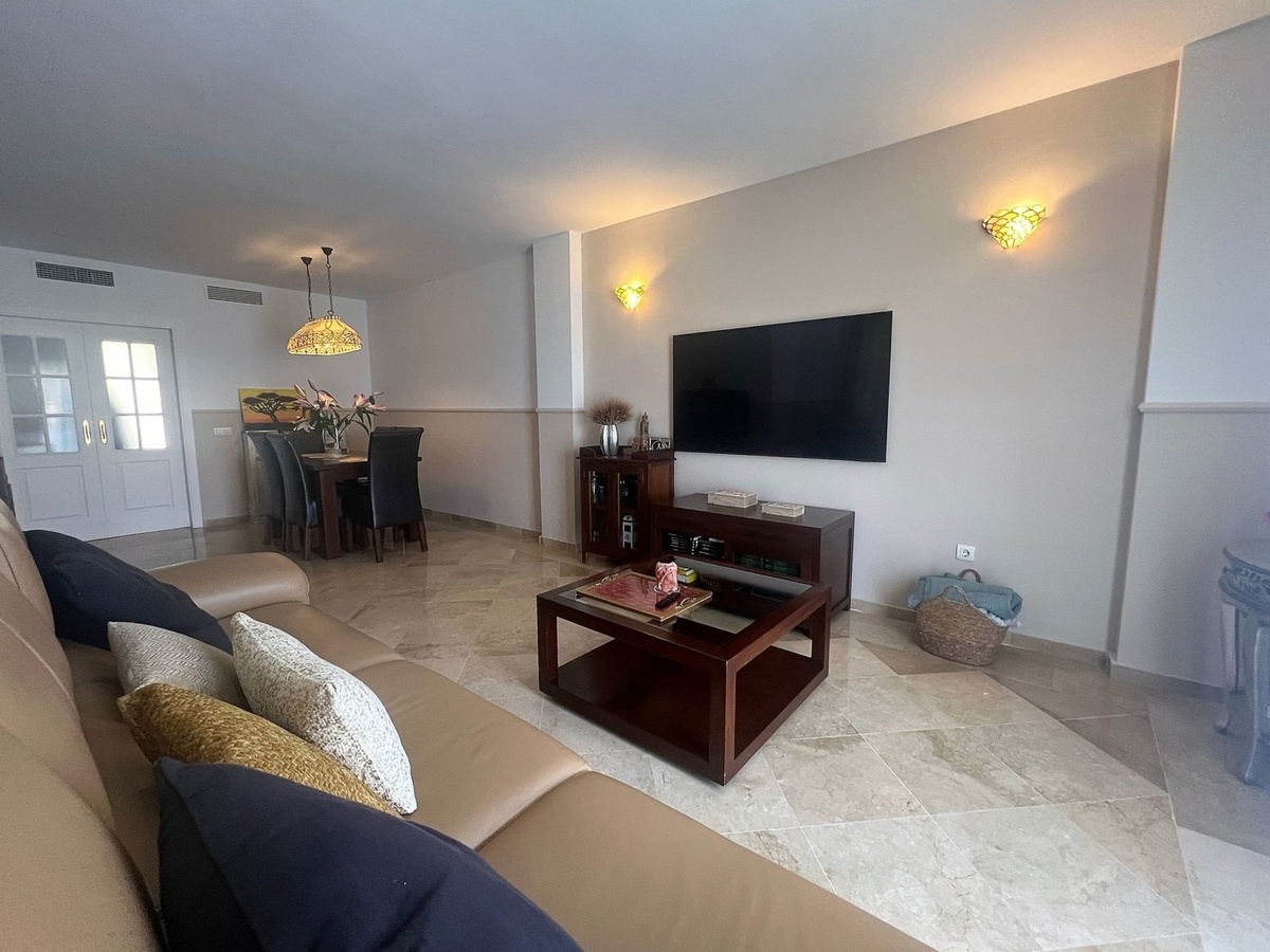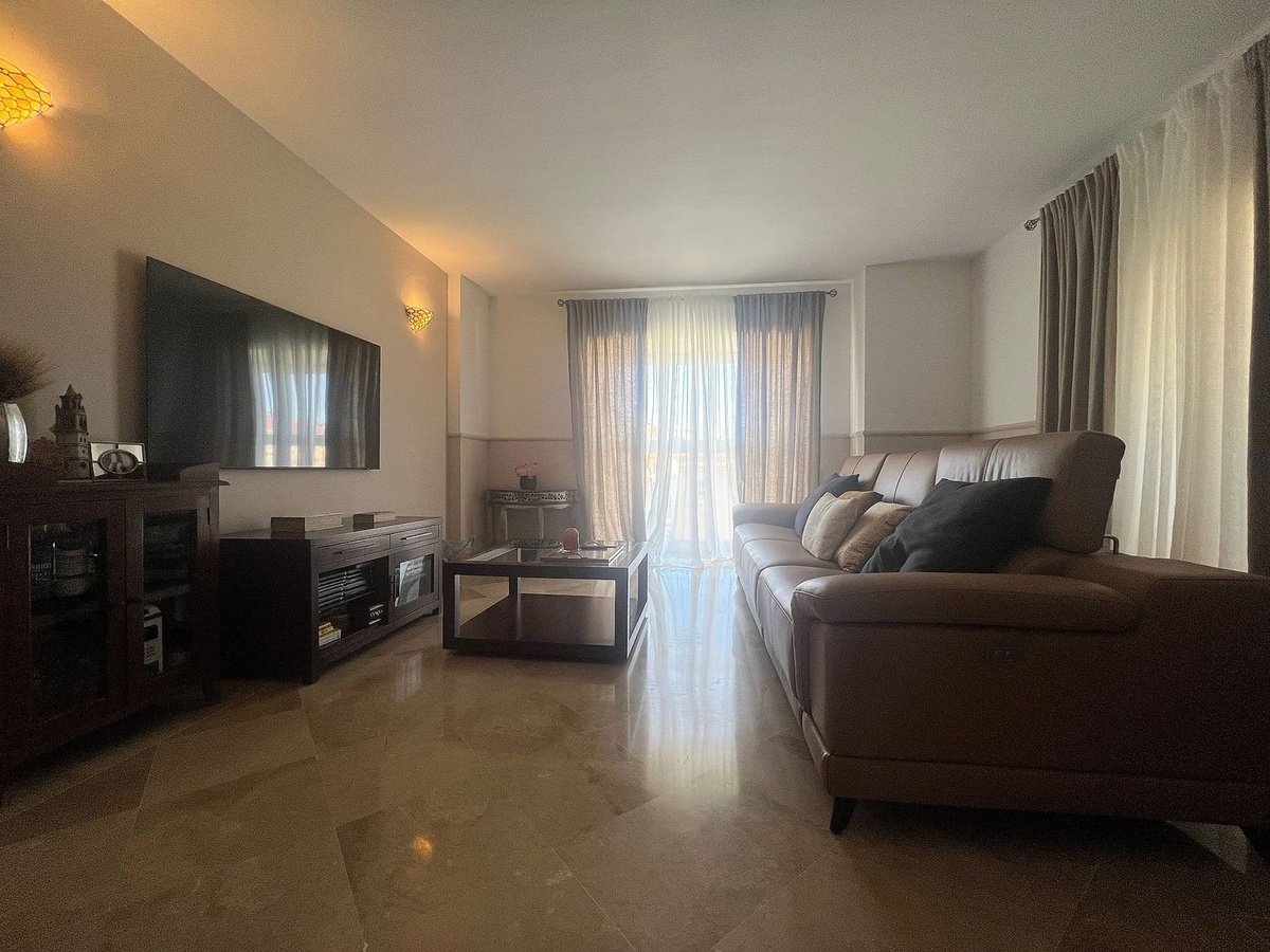 The welcoming living room is filled with sunlight and opens directly onto a large south-facing terrace, an ideal space for relaxing, dining outdoors, and enjoying the Costa del Sol sunshine all year round.