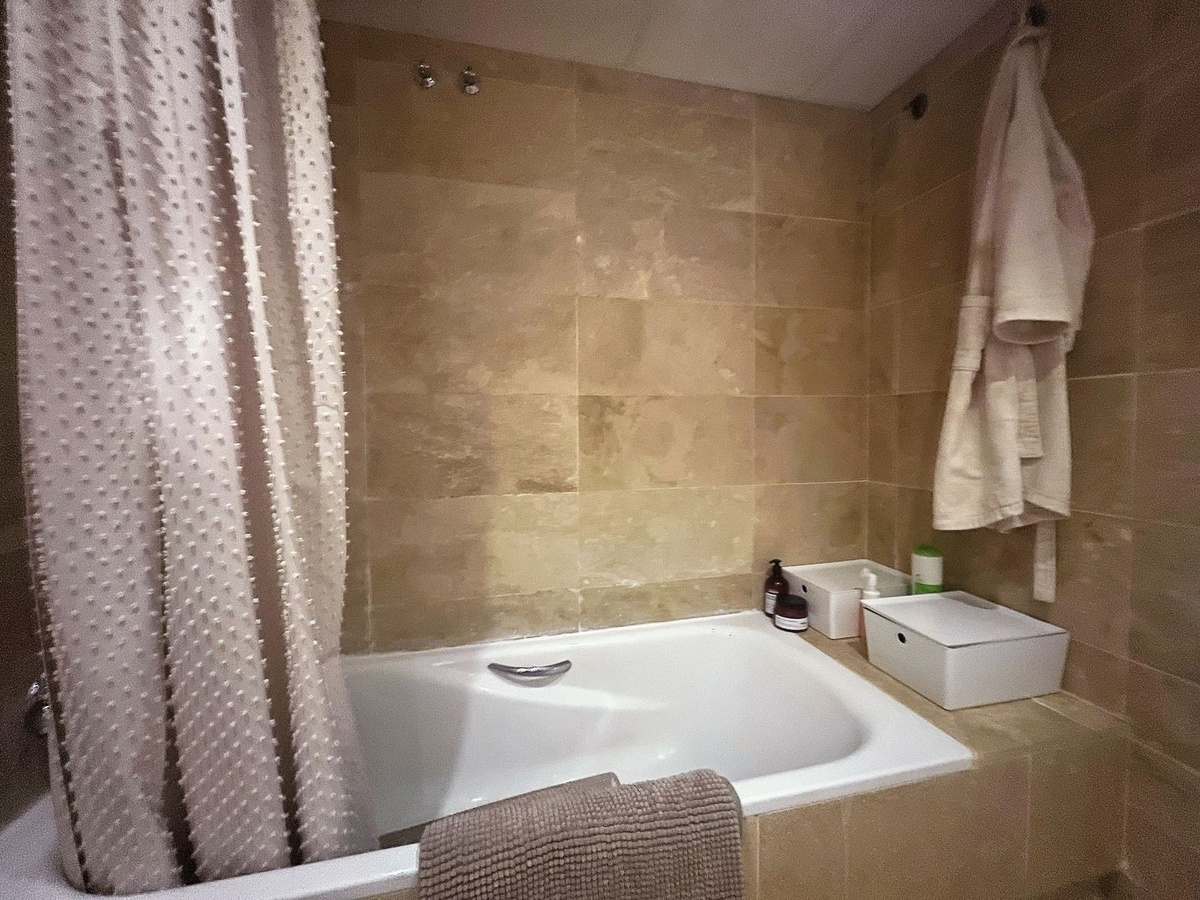This bright and well-proportioned property features 2 spacious bedrooms with fitted wardrobes and 2 full bathrooms, both with exterior windows that provide natural light and ventilation. The master bedroom enjoys the added comfort and privacy of an en-suite bathroom.