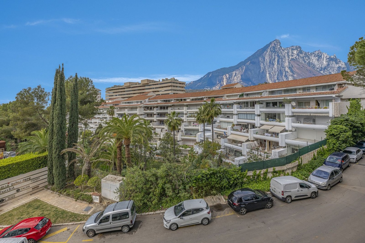 The property is part of a well-established gated community known for its mature gardens and tranquil atmosphere. Jardín del Mediterráneo offers 24-hour security, concierge service, and two communal swimming pools set among beautifully landscaped grounds. The apartment also includes a private parking space and storage room.