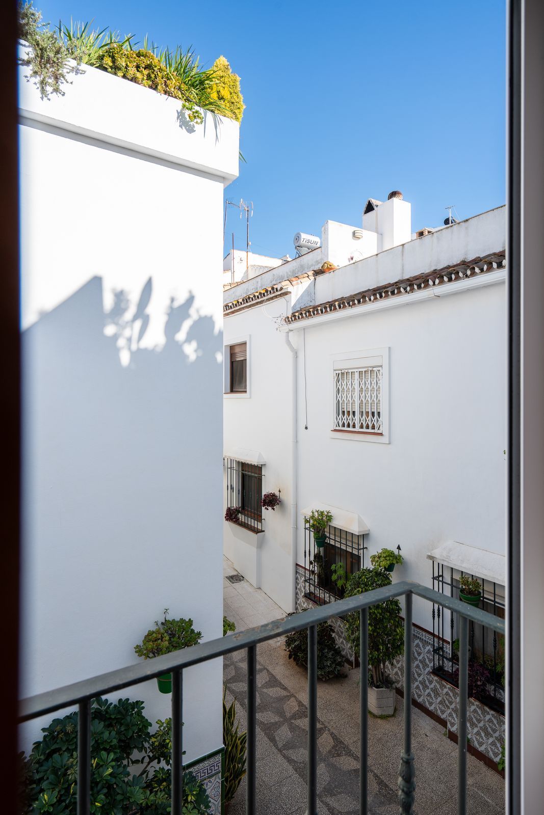 The townhouse is comfortable and cosy, with a spacious living room with a fireplace and a charming, fully equipped kitchen. The bedrooms with typical Andalusian balconies with original wodden windows, traditional flooring in all rooms, give this modern house a special feel. Tourist licence in place