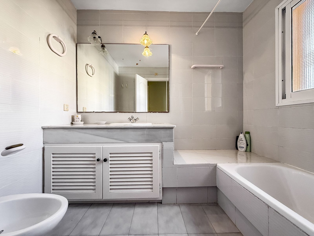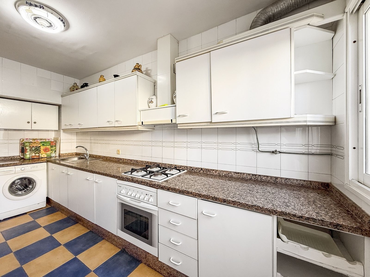 La propiedad ofrece mucho potencial de reforma, ya que sería posible abrir la cocina para integrarla con el salón y añadir una barra americana, además de ampliar la cocina cerrando la zona del lavadero.