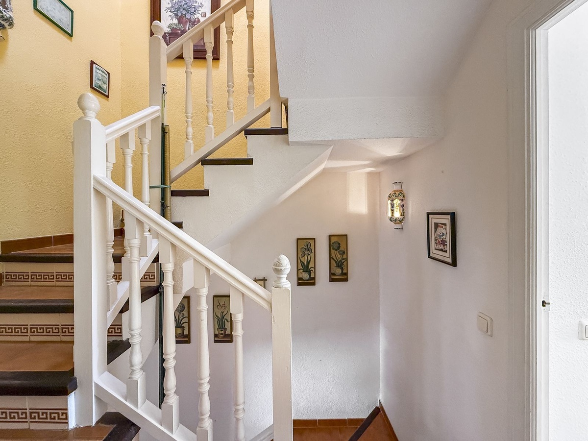 La casa cuenta con un porche cerrado de entrada que da acceso a la puerta principal blindada. El hall distribuye hacia un aseo de cortesía y una cocina independiente, que dispone de su propia terraza privada utilizada actualmente como lavadero.