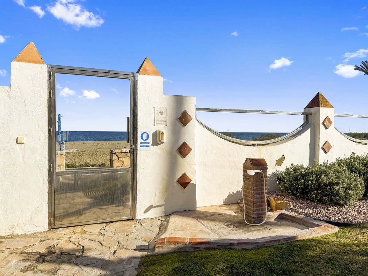 La urbanización es cerrada y segura, con cámaras de vigilancia, jardines maduros y piscina de agua salada frente al mar. Además, los gastos de comunidad son bajos, aproximadamente 150 € al mes.