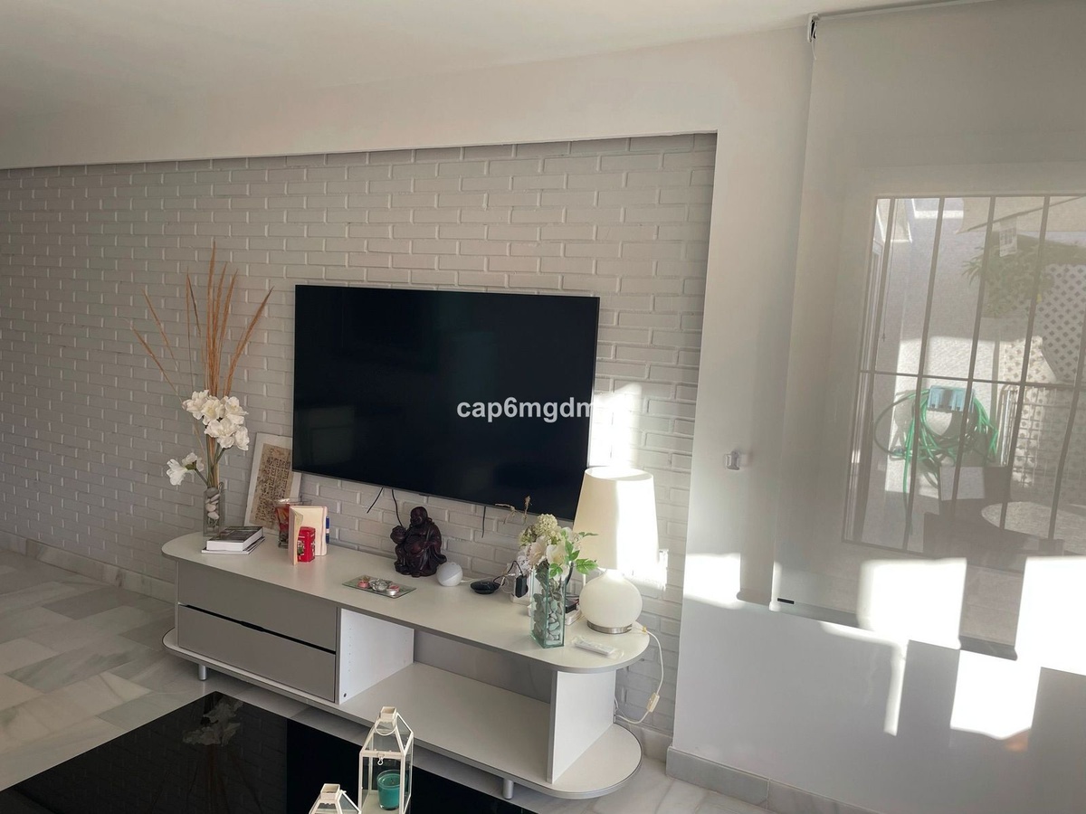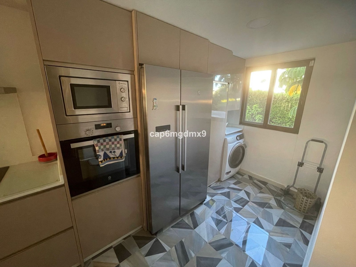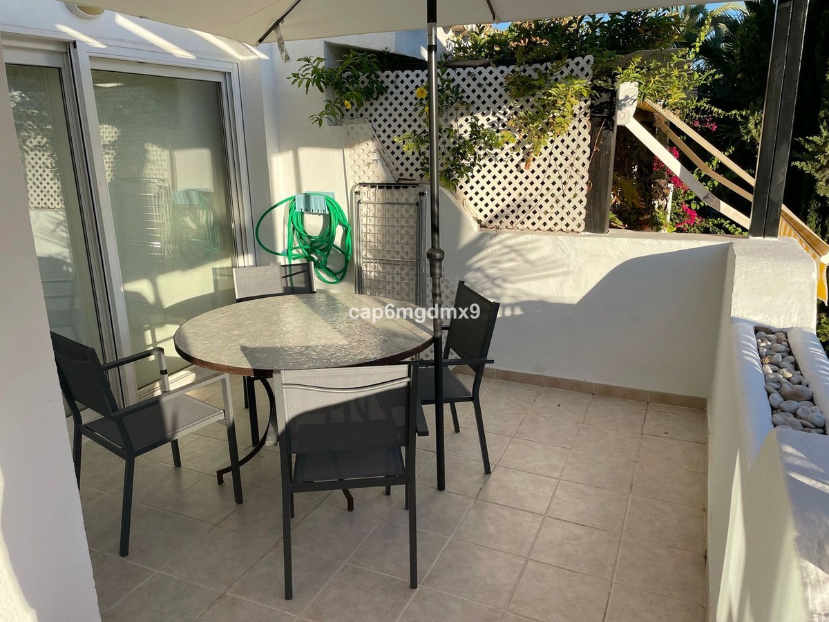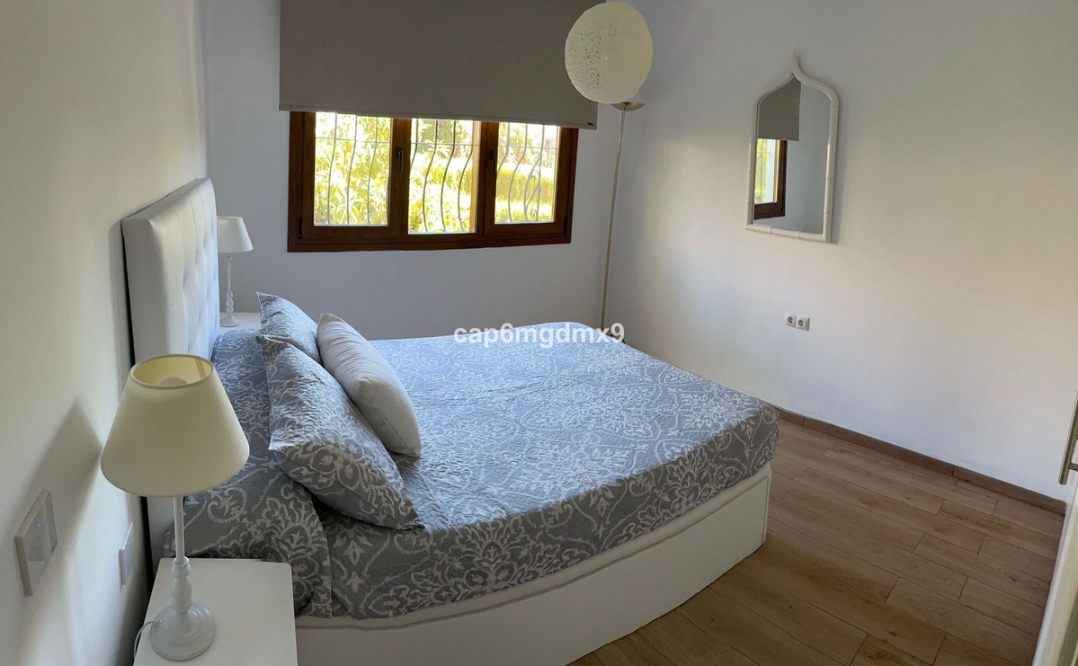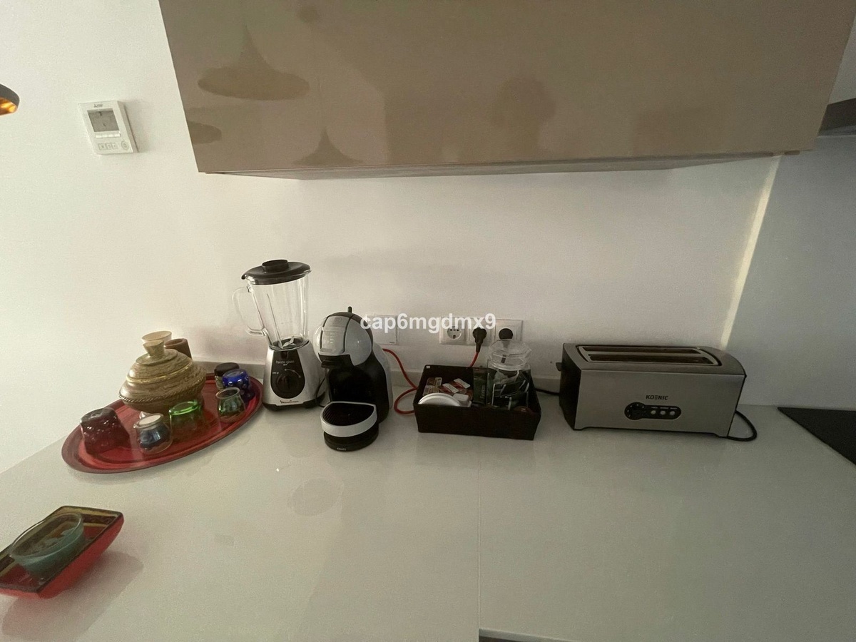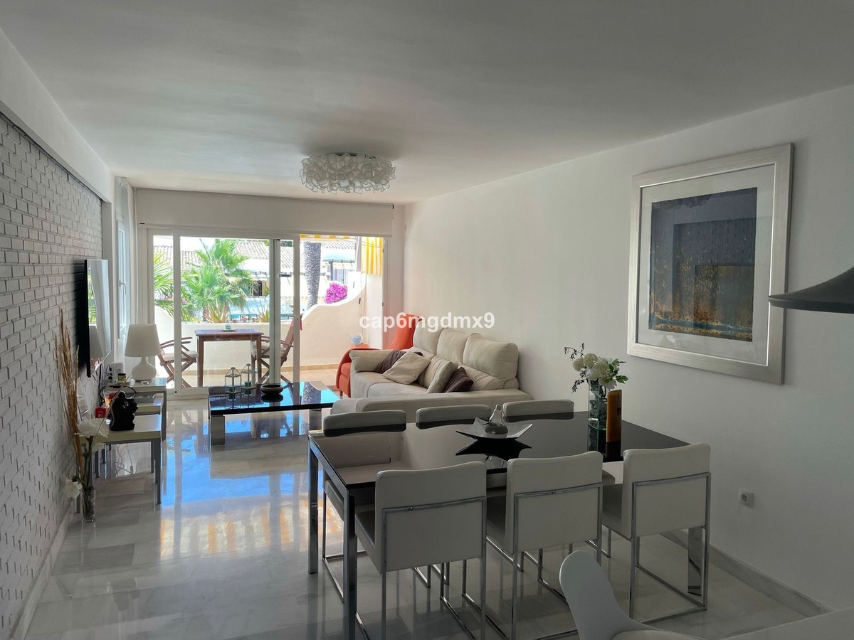 2 bedroom renovated apartment located in Sierra Blanca only a few minutes drive to Marbella. The apartment is on the first floor with one flight of stairs leading up to the property. There is no elevator. The complex is gated and quiet, Spanish style with communal gardens and swimming pool. There is communal parking (not gated).