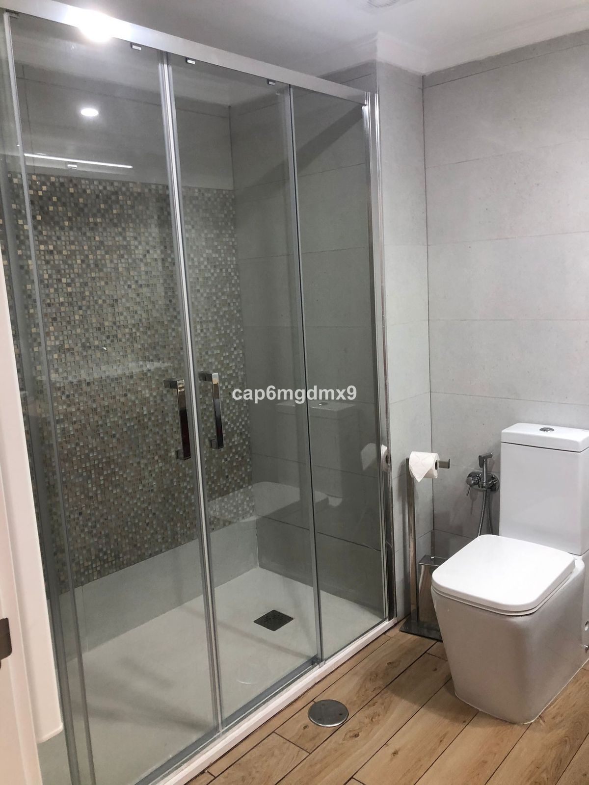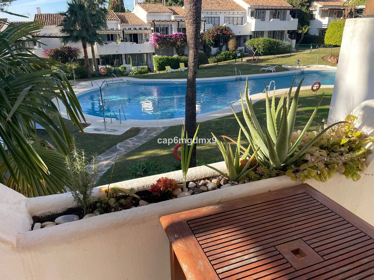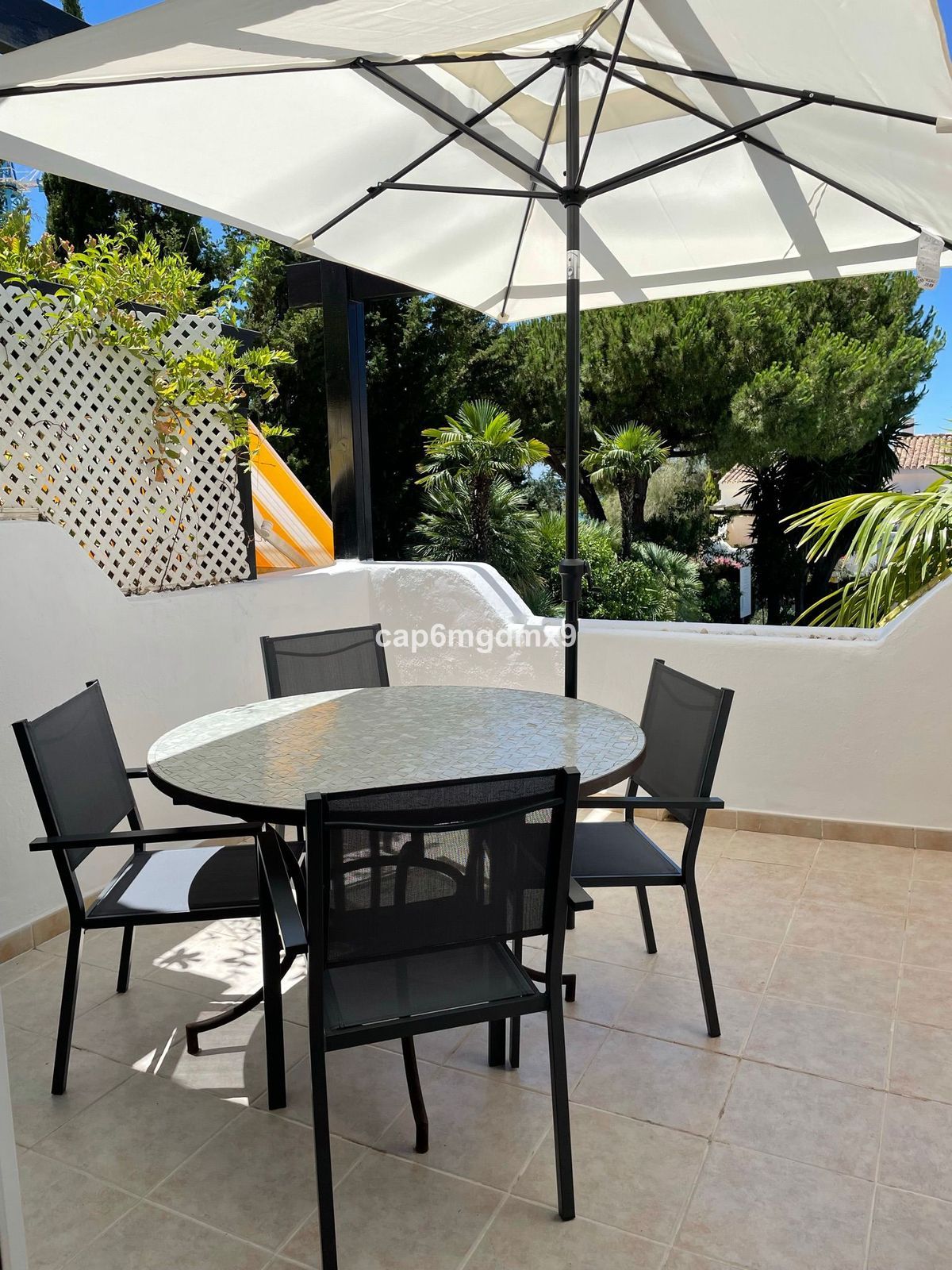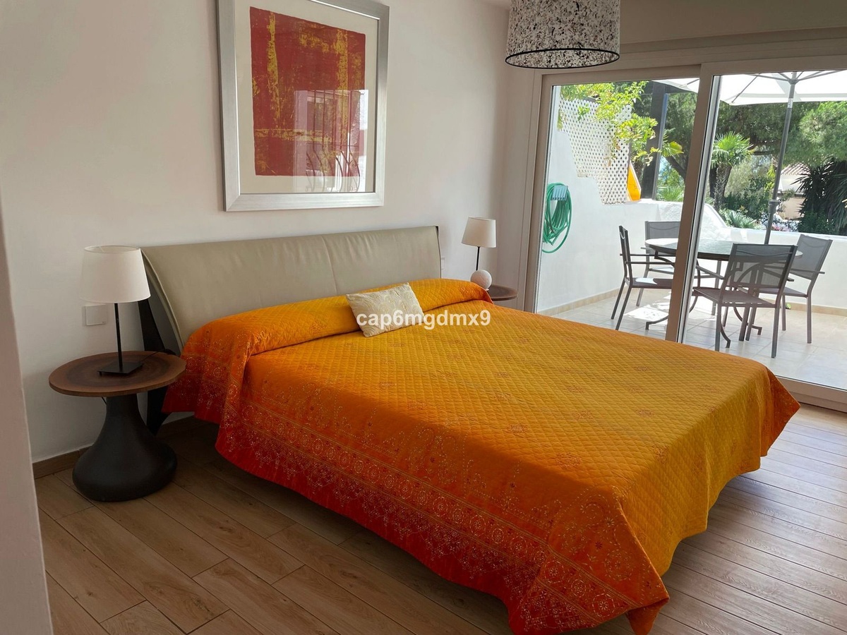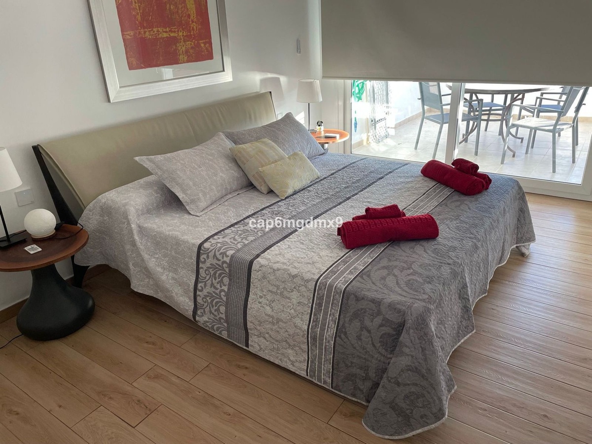 2 bedroom renovated apartment located in Sierra Blanca only a few minutes drive to Marbella. The apartment is on the first floor with one flight of stairs leading up to the property. There is no elevator. The complex is gated and quiet, Spanish style with communal gardens and swimming pool. There is communal parking (not gated).