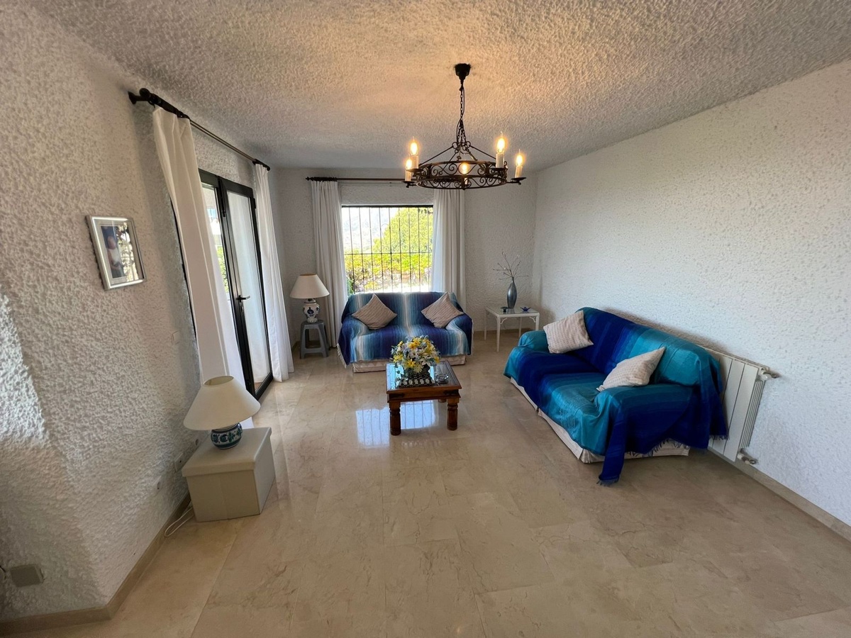 Además, hay una habitación acogedora con acceso a la terraza que se extiende a lo largo de la villa.
