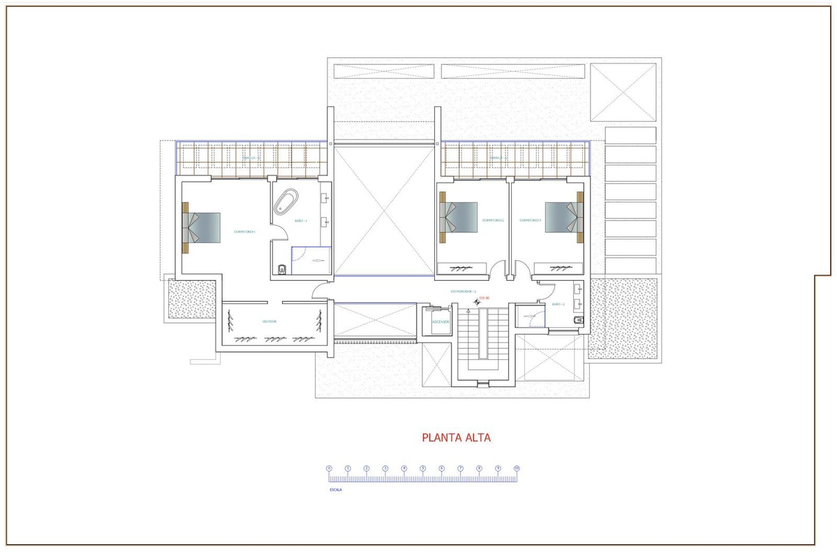 Primera planta; ascensor, dormitorio principal con baño en suite, vestidor y terraza privada, otros 2 dormitorios que comparten un baño y cada uno con una terraza.