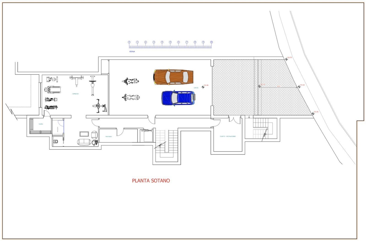 Sotano; gran garaje, ascensor, sala de maquinas, trastero, sauna, baño, gimnasio, el sotano tiene ventanas por lo que existe la posibilidad de adaptar la planta y añadir otro dormitorio con baño ensuite sin aumentar el coste.