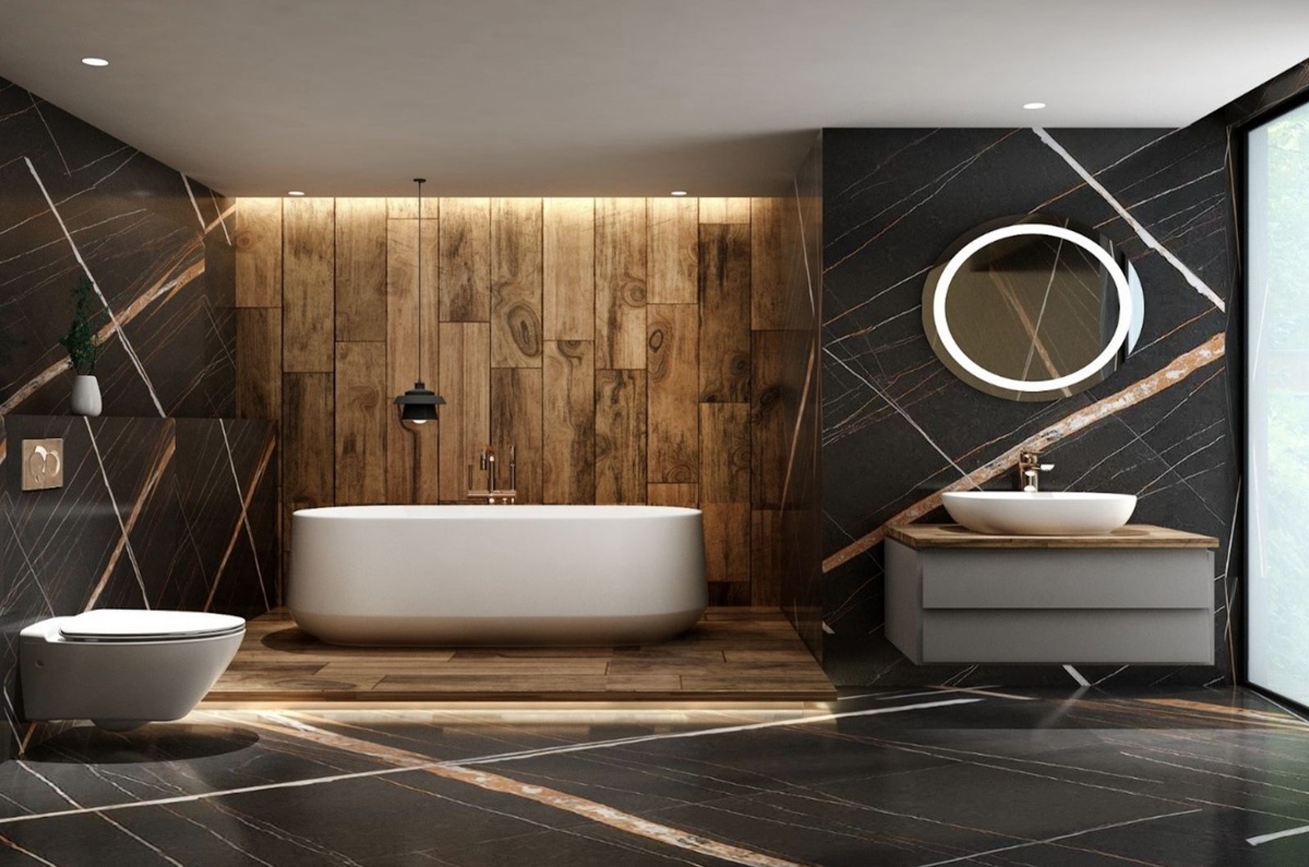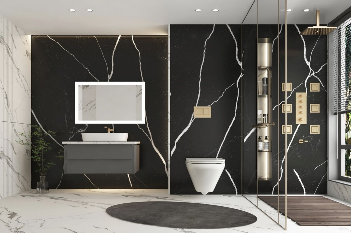 - Paredes de baños con placas de COVERLAM (GRESPANIA) 2700X1200
