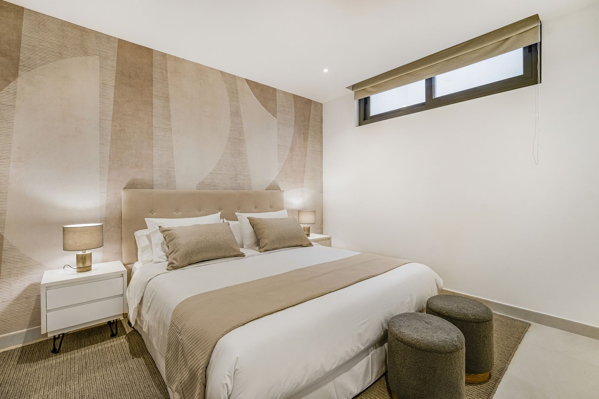 El nivel inferior está dedicado al ocio y la comodidad y ofrece una amplia sala de estar con bar, mesa de billar y dos suites adicionales para invitados.Este nivel también proporciona acceso a un garaje privado con espacio para tres coches y estaciones de carga eléctrica.