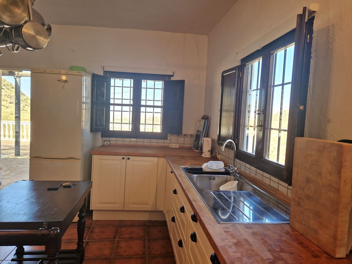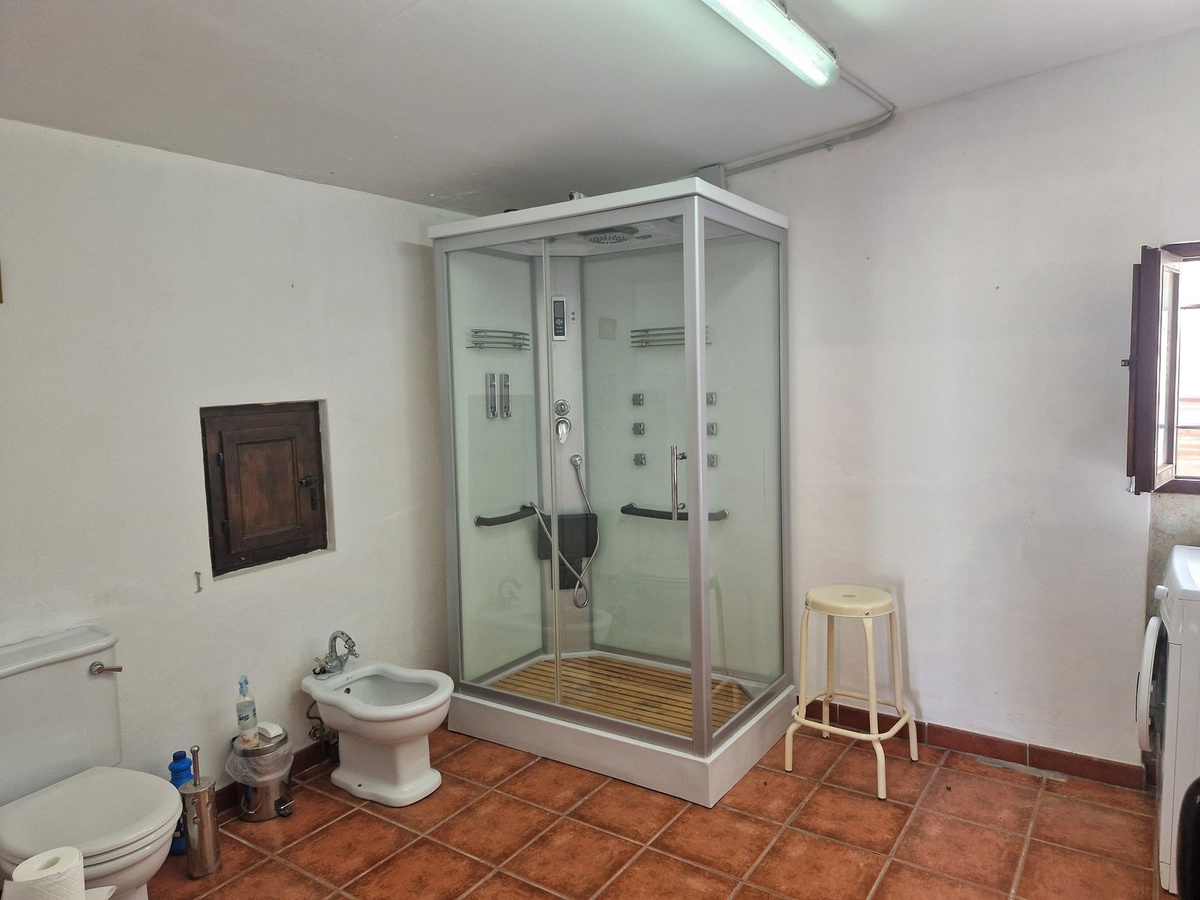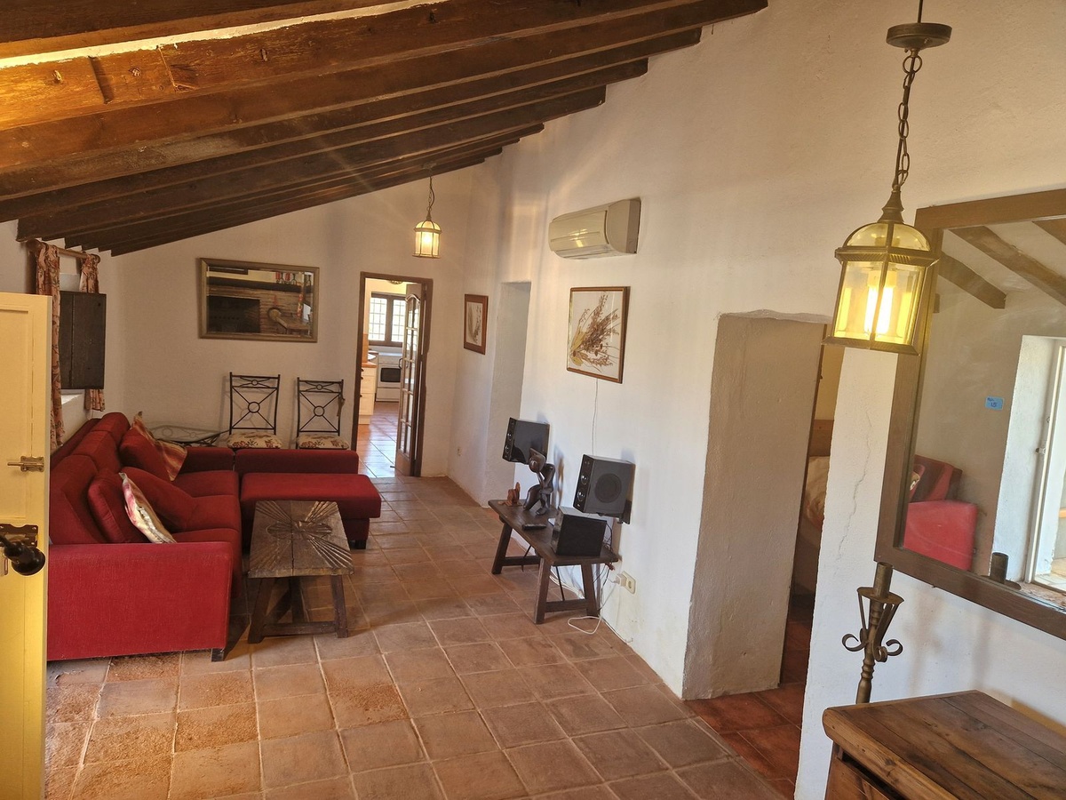 La casa principal tiene una distribución con una gran cocina/comedor y acceso a un gran baño con doble lavabo, ducha y lavadora. El salón tiene un aire tradicional y tiene un gran chimenea y aire acondicionado. Desde el salón se accede a dos dormitorios y a la gran terraza con vistas al valle y las montañas circundantes. En la parte trasera de la casa hay una edificación anexa que se puede utilizar como apartamento de invitados independiente, o construyendo/convirtiendo la terraza "intermedia" para agregarla a la casa principal, esta actualmente tiene cocina, baño y dormitorio. Hay una cochera independiente y un garaje/taller anexo muy grande. Las vistas desde la terraza son increíbles y es muy privado y tranquilo, excepto por el hecho de que también puede estar en la ruta de vuelo del aeropuerto de Málaga.