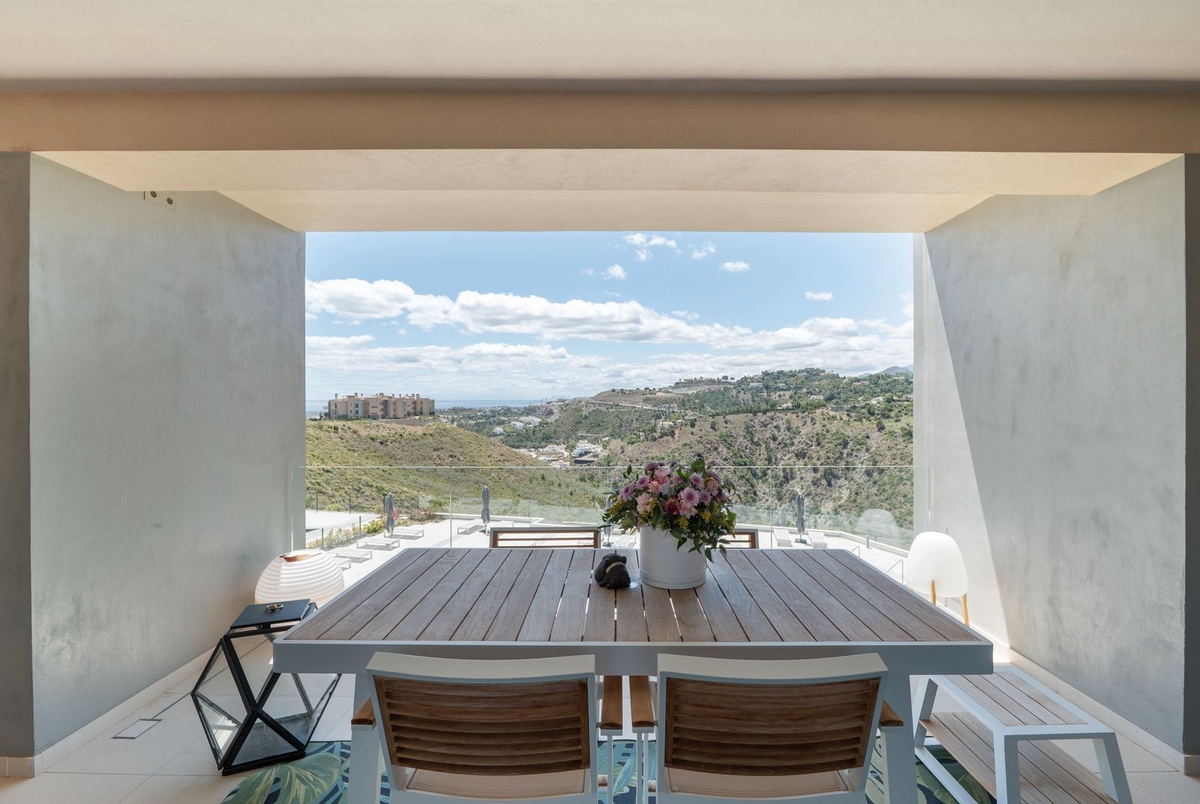 This super modern, spectacular, and unique 4-bedroom luxury apartment is now for sale in Olivos, la Quinta, Benahavís. The apartment is exceptionally large, as it was bought off-plan and combines two separate apartments (one with 3 bedrooms and one with 2 bedrooms) into one expansive living space. This unique layout provides generous room sizes and a vast terrace area. It features 4 bedrooms and 4 bathrooms, offering a perfect fusion of nature, tradition, and modern design. The apartment boasts breathtaking panoramic views of the entire region, including the sea, golf courses, mountains, and the La Concha peak, and is south to south-west facing to maximize natural light.