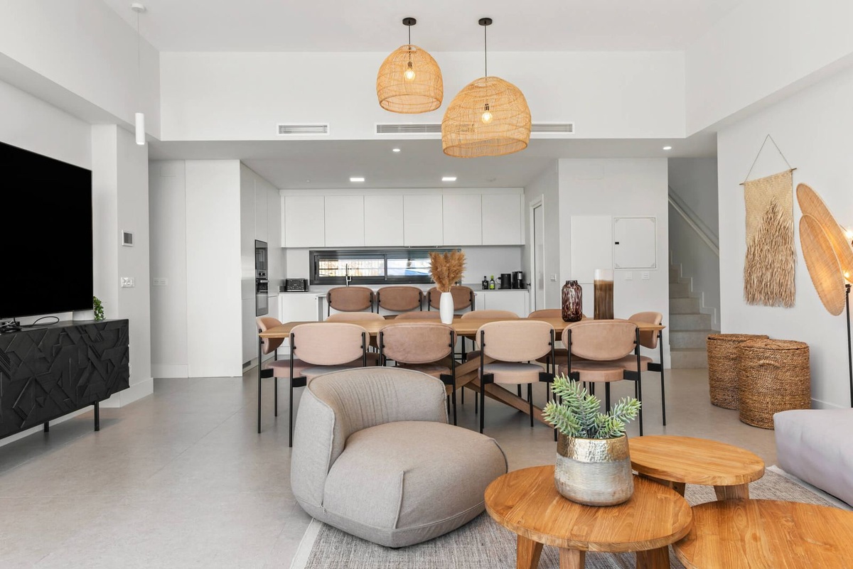 Al lado, hay una espaciosa cocina con una distribución abierta al salón, que a su vez desemboca en la terraza.