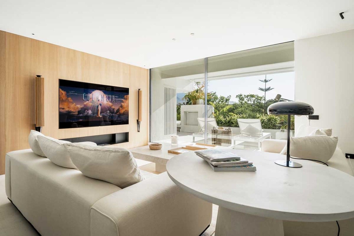 El espacio vital se ve mejorado por un sofisticado sistema de iluminación de automatización del hogar, persianas eléctricas y un sistema de audio Bose integrado, asegurando una combinación perfecta de tecnología moderna y lujo.