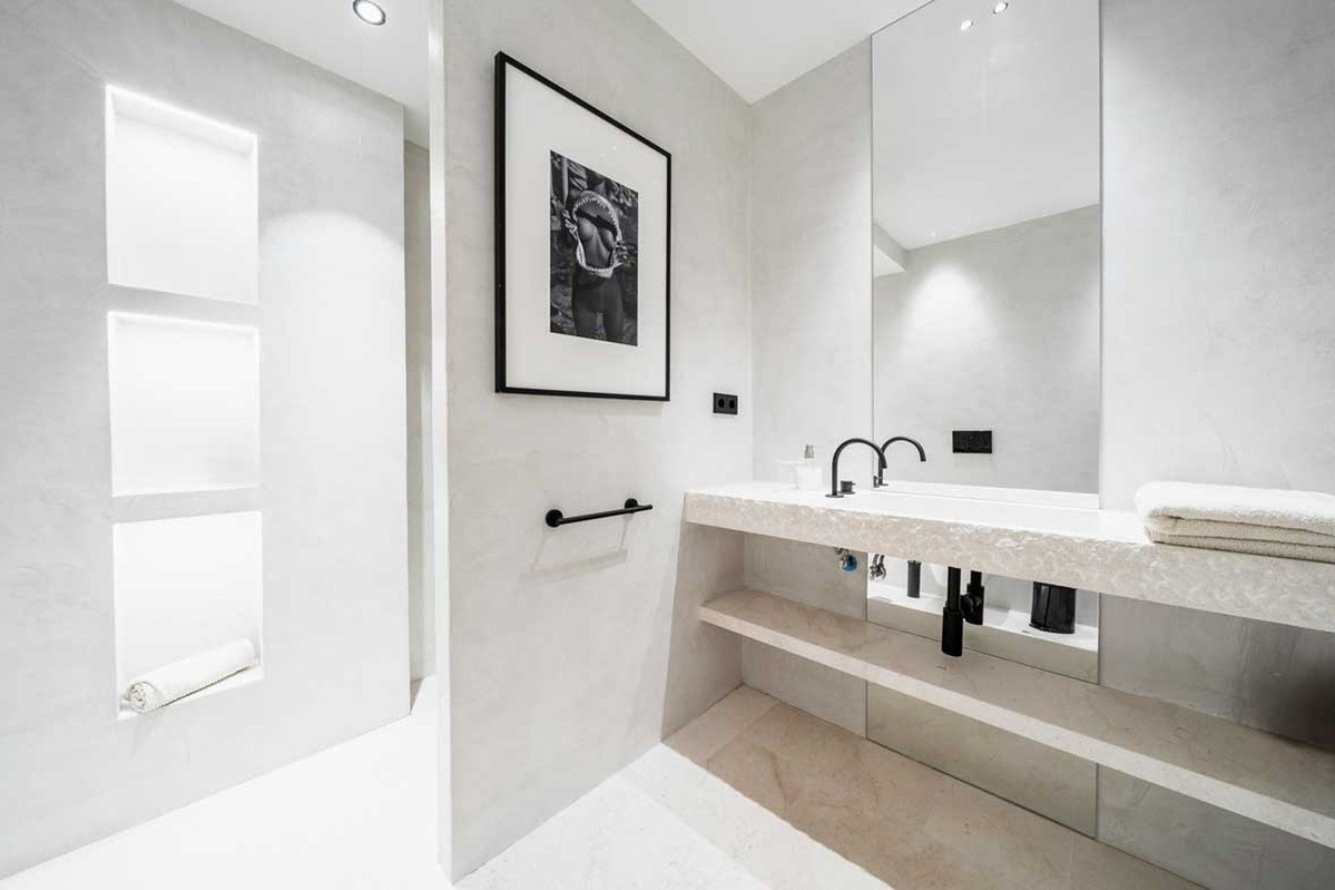 El apartamento cuenta con tres espaciosas habitaciones en suite, cada una diseñada con comodidad y elegancia en mente.