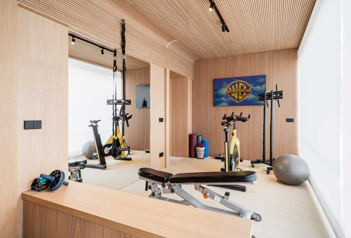 Una de las características destacadas de este apartamento es el gimnasio privado, equipado con equipos de technogym de última generación, asegurando que los residentes puedan mantener sus rutinas de acondicionamiento físico sin dejar la comodidad de su hogar.