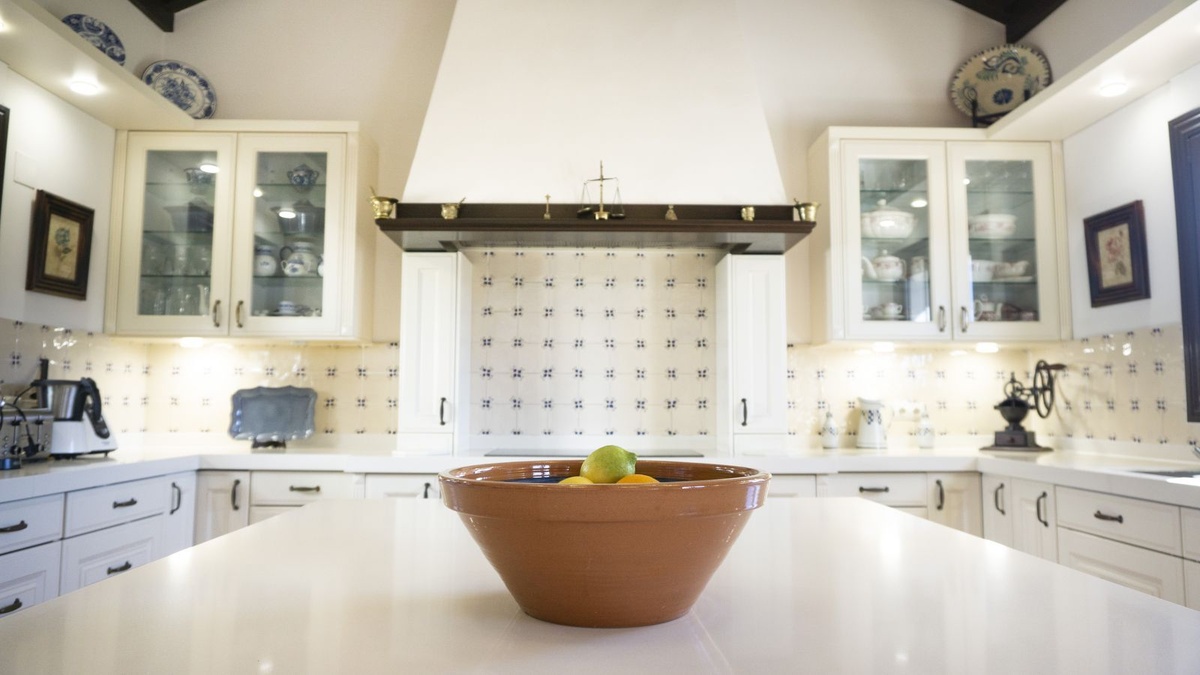 The large kitchen is equipped with top-quality appliances, making it a chef's dream.