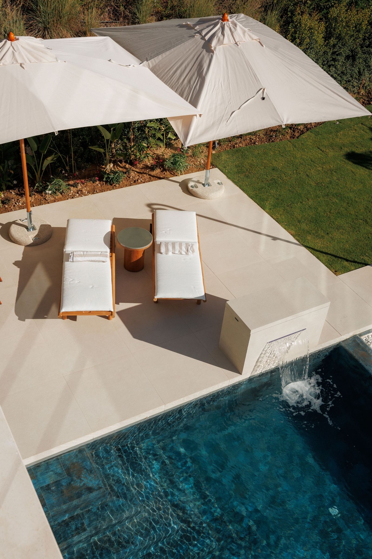 La villa se extiende en tres niveles, asentada sobre una parcela de 1.100m2 y cuenta con un jardín estilo mediterráneo y la piscina exterior con equipos de purificación, clorador salino y bomba de calor para mantener agua caliente y cubrición de PVC para mantenimiento y temperatura.